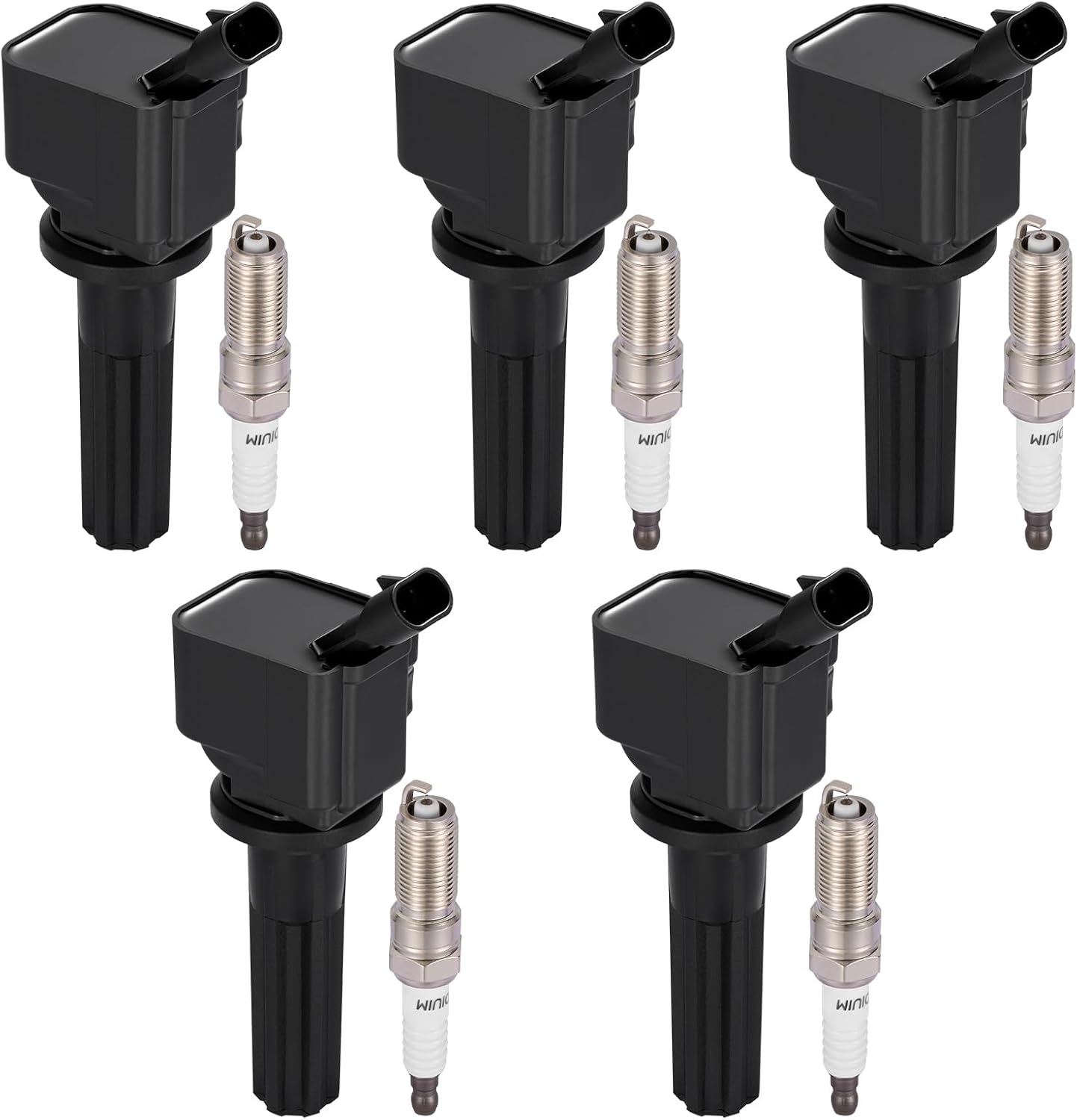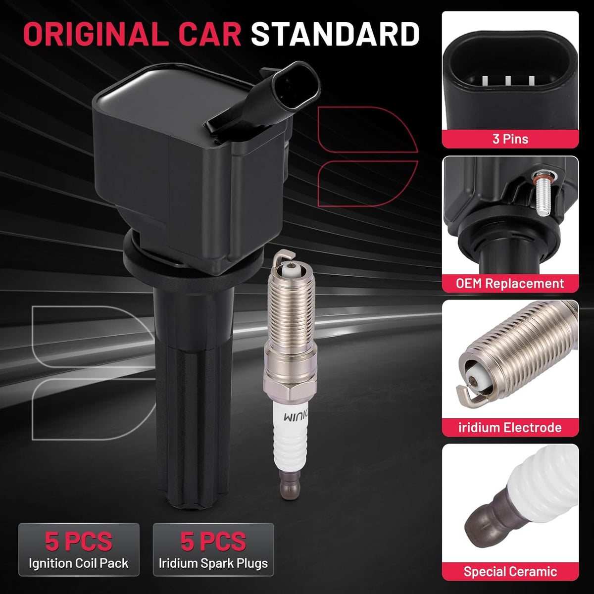 BDFHYK 5 Ignition Coil Pack UF497 and 5 Iridium Spark Plug 5019 Compatible with Chevrolet Colorado, Compatible with GMC Canyon, Compatible with Hummer H3 H3T 3.7L l5 Coil for 12596547 12612369