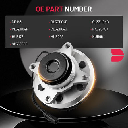 [OE PART NUMBERS] This wheel hub bearing assembly replaces OE part numbers: 515143, BL3Z1104B, CL3Z1104B, CL3Z1104F, CL3Z1104J, HA590487, HUB172, HUB229, HUB66, SP550220