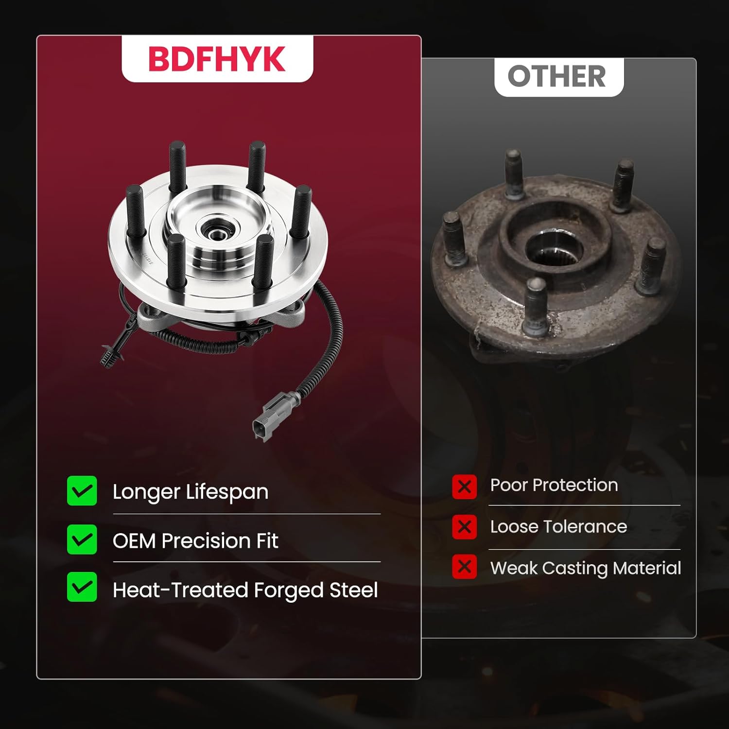 [IMPORTANT NOTICE] Ensure proper installation using the correct tools without disassembling the wheel hub bearings or adjusting the sealing ring. If you experience any issues within one year of purchase, feel free to reach out — our support team is here to help with any questions or concerns