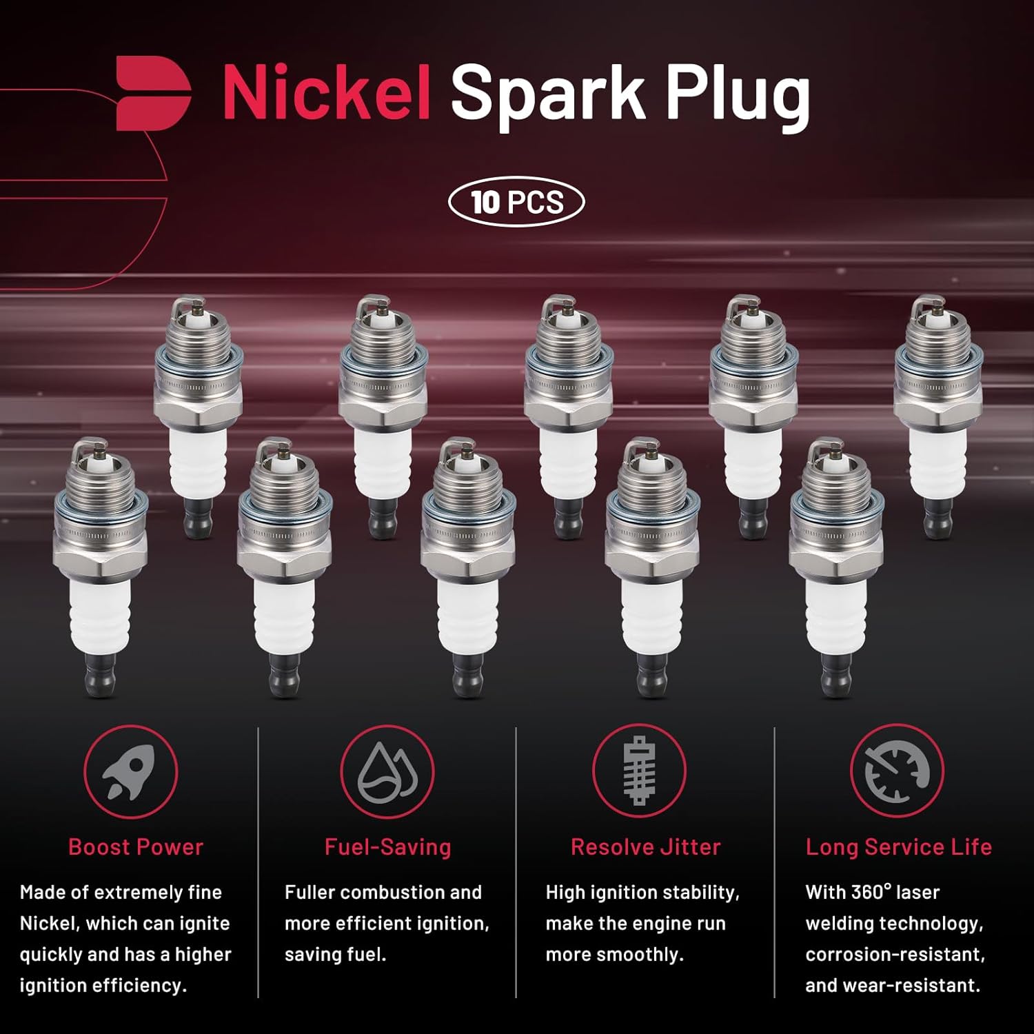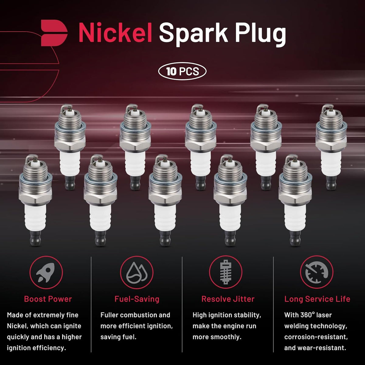 BDFHYK 5574 universal Spark Plugs Compatible with Universal engine for garden machines, lawn mowers, trimmers, etc. Replacement for BPMR8Y Set of 10