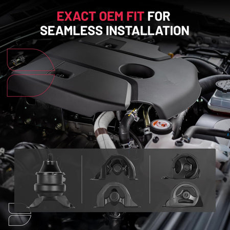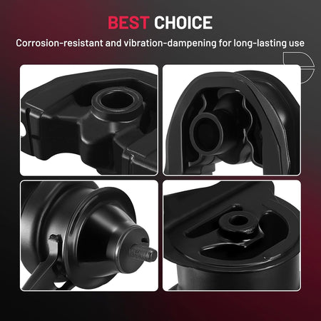 【Package Included】1x Front Motor Mount Part Number# A6502, EM8709, 1x Front Left Motor Mount Part Number# A6585, EM8982, 1x Front Right Motor Mount Part Number# A6520, EM8575, 1x Rear Motor Mount Part Number# A6506, EM8897, 1x Transmission Mount Part Number# A6526, EM8300,