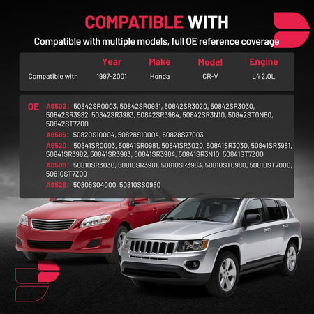 【Replace OE】A6502:50842SR0003, 50842SR0981, 50842SR3020, 50842SR3030, 50842SR3982, 50842SR3983, 50842SR3984, 50842SR3N10, 50842ST0N80, 50842ST7Z00 A6585:50820S10004, 50828S10004, 50828S77003 A6520:50841SR0003, 50841SR0981, 50841SR3020, 50841SR3030, 50841SR3981, 50841SR3982, 50841SR3983, 50841SR3984, 50841SR3N10, 50841ST7Z00 A6506:50810SR3030, 50810SR3981, 50810SR3983, 50810ST0980, 50810ST7000, 50810ST7Z00 A6526:50805S04000, 50810SS0980