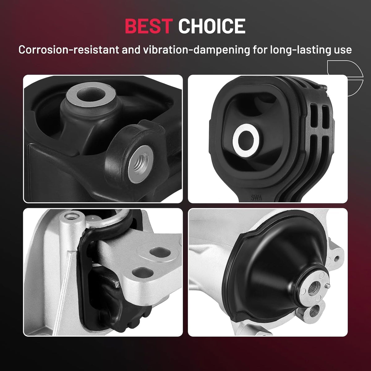 【Package Included】1x Front Right Motor Mount Part Number# A4595, 9496, 1x Front Upper Torque Strut Mount Part Number# A4535, 9303, 1x Front Lower Torque Strut Mount Part Number# A4536, 9302, 1x Transmission Mount Part Number# A4598, 9397, 1x Rear Differential Mount Part Number# A65010