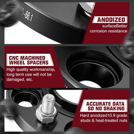 【Features of Hubcentric Wheel Spacer】: For your driving safety, we continue to improve, using aviation 6061 aluminum forging, CNC integrated molding, surface through anodic oxidation treatment, to ensure accuracy and wear resistance, 10.9 class bolts; all BDFHYK wheel spacer certified by IATF 16949:2016 quality system.