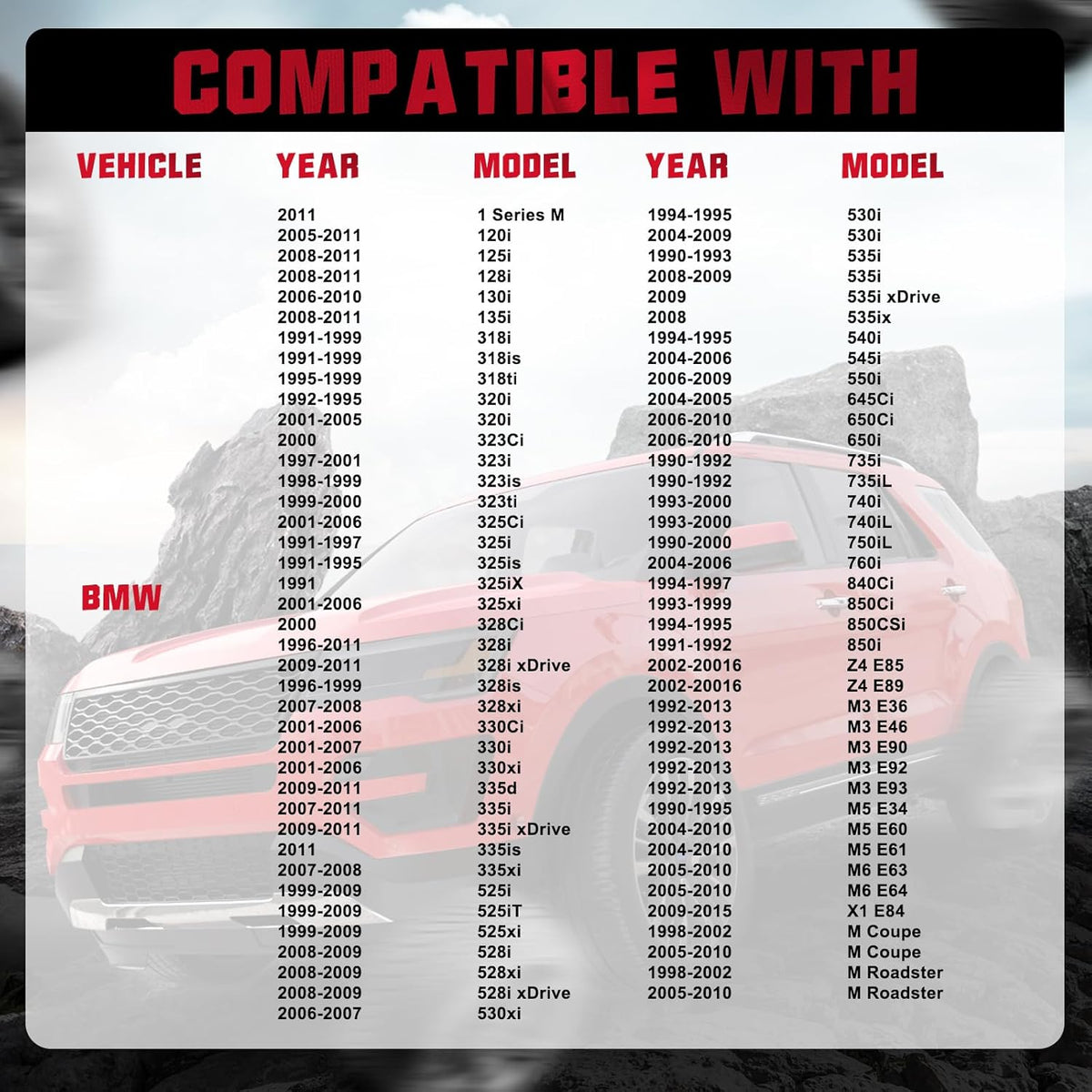 【Basic Info:】Wheel Spacers Compatible BMW 318i 318is 318ti 320i 323i 323is 325i 325iX 325is 325iX 328i 328is 525i 525xi 528i 528i xDrive 528xi 530i 530xi 535i 535i xDrive 535xi 540i 545i 550i 645Ci 650Ci 650Ci 650i 735i 735iL 740i 740iL 750iL M3 M5 M6 Z4 X1.Please check detail fitting info from pics or detail page. 12 months warranty and lifetime after-sales service are furnished after bought our products. Please choose a suitable one with confidence.
