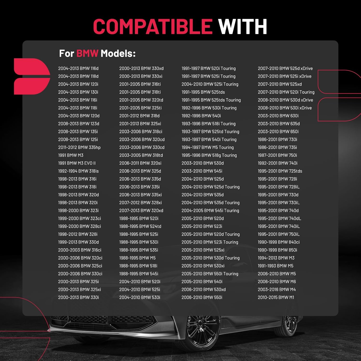 【Basic Info】:Wheel Spacers Compatible BMW 116i 118i 125i 135i 316i 318i 320i 323i 325i 330i 335i 528i 528i xDrive 535i 535i xDrive 550i 550i xDrive 630i,635d,650i 730i,735i 840ci,850i M3 M5 M6 Z4 X1.Please check detail fitting info from pics or detail page. 12 months warranty and lifetime after-sales service are furnished after bought our products. Please choose a suitable one with confidence.
