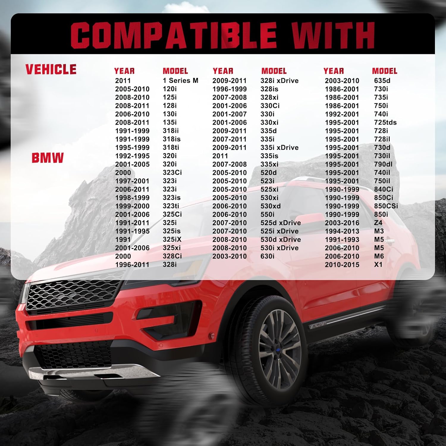 Basic Info: Wheel Spacers Compatible with BMW 1 Series M 120i 125i 128i 130i 135i 318ti 320i 323i 323ti 325i 325xi 328i xDrive 330i 335i xDrive 520d 523i 525xi 530xi 550i 525d xDrive 525i xDrive 530i xDrive 630i 635d 730i 735i 750i 740i 725tds 728i 730d 790dl 740il 750il 840Ci 850Ci 850C Si 850i M3 M5 M6 X4 Z1.Please check detail fitting info from pics or detail page. 12 months warranty and lifetime after-sales service are furnished after bought our products. Please choose a suitable one with confidence