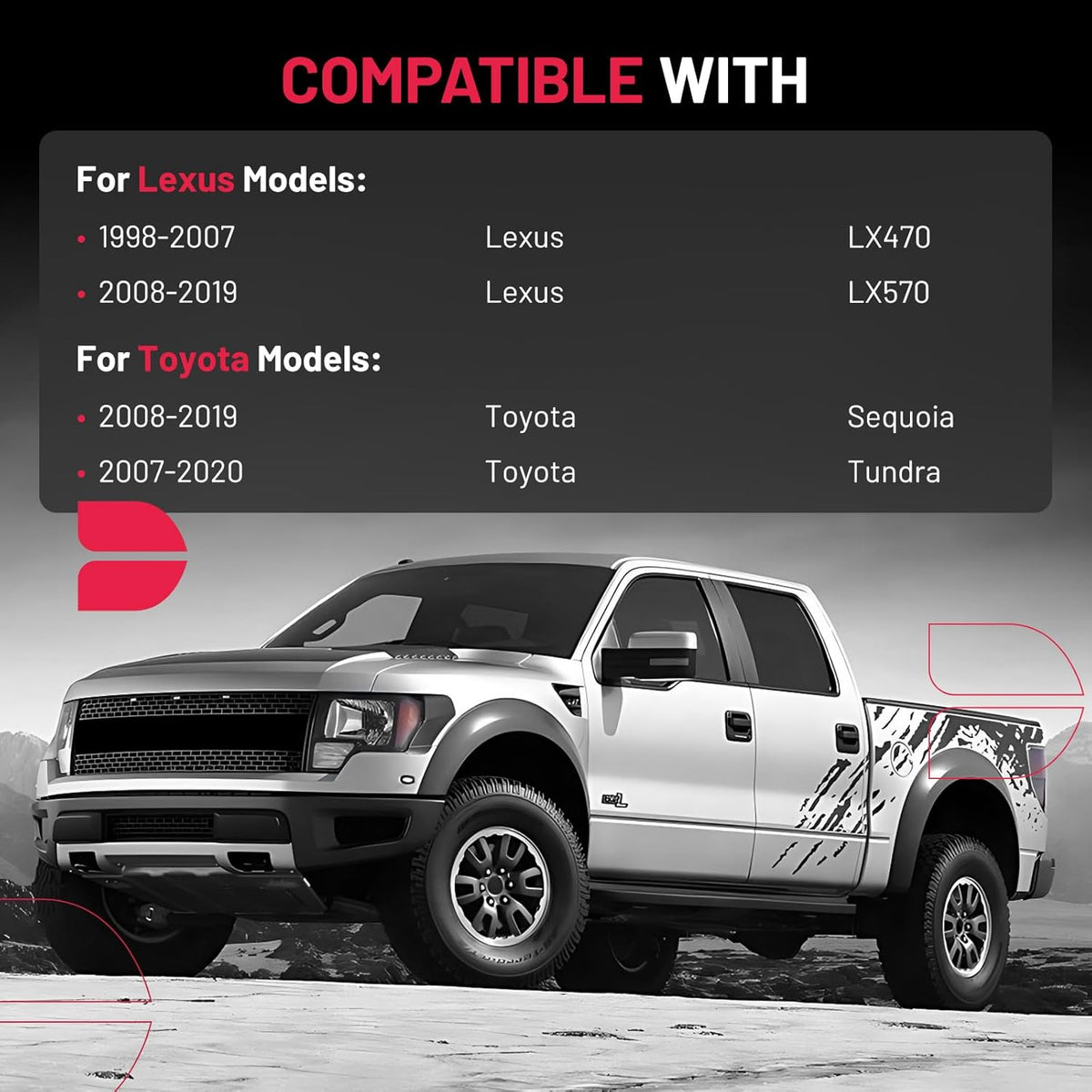 【Basic Info:】Wheel Spacers Compatible with Lexus 1998-2007 LX470, 2008-2019 LX570; Compatible with Toyota 2008-2019 Sequoia, 2007-2020 Tundra.Please check detail fitting info from pics or detail page. 12 months warranty and lifetime after-sales service are furnished after bought our products.Please choose a suitable one with confidence.