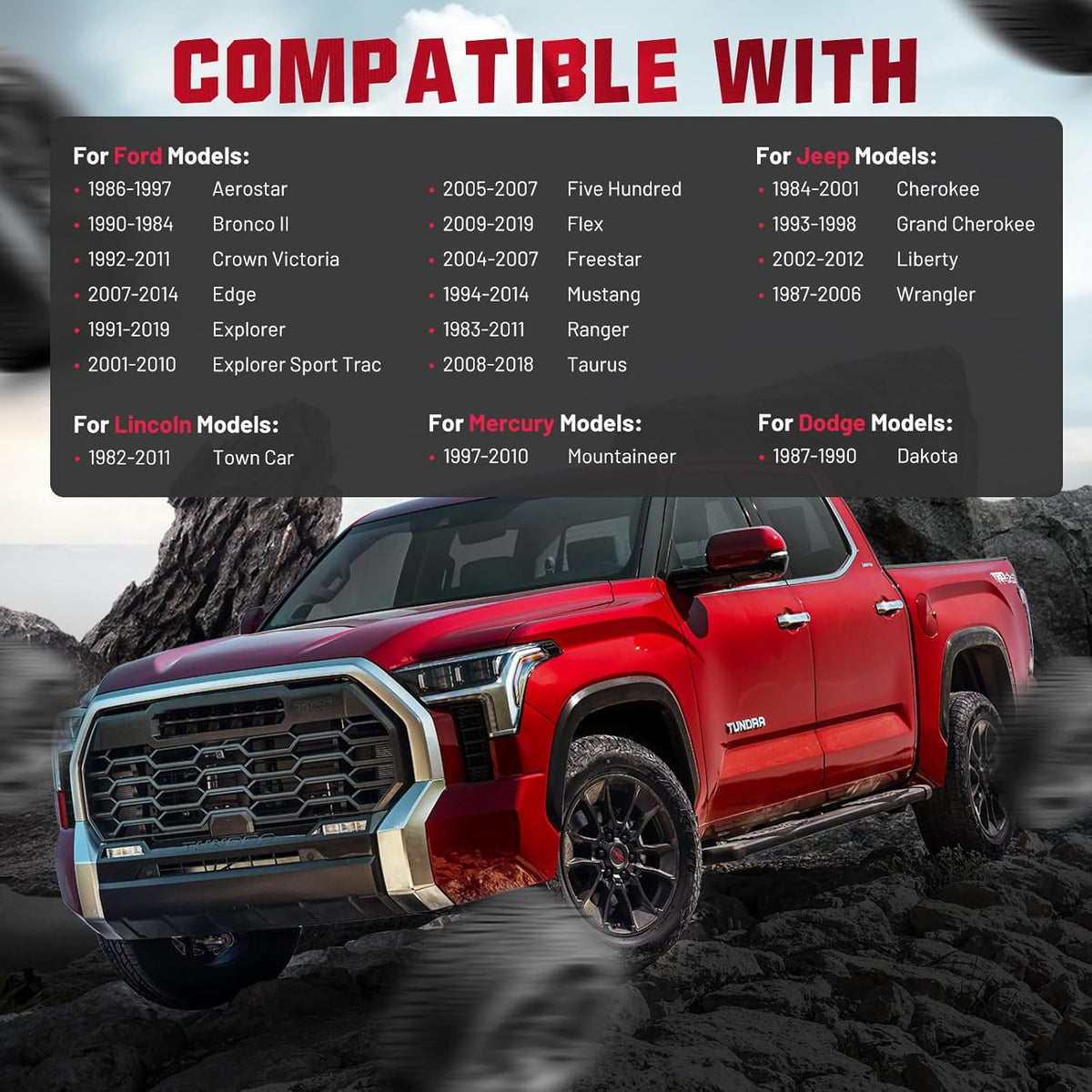 【Basic Info】:Wheel Spacers Compatible with Ford Ranger Crown Victoria Edge Explorer Five Hundred Freestar Mustang Bronco II; Compatible with Jeep Cherokee Grand Cherokee Liberty Wrangler; Compatible with Dodge Dakota; Compatible with Lincoln Town Car; Compatible with Mercury Mountaineer.Please check detail fitting info from pics or detail page. 12 months warranty and lifetime after-sales service are furnished after bought our products. Please choose a suitable one with confidence.