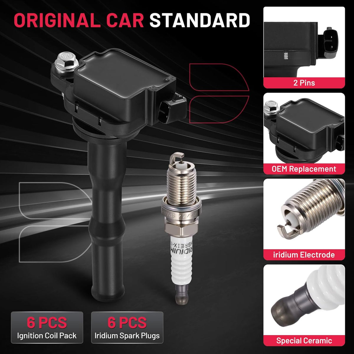 BDFHYK 6 Ignition Coil Pack UF204 and 6 Iridium Spark Plug 2756 Compatible with Lexus 1994-1995 ES300,Compatible with Toyota 1995 Avalon,1994-1995 Camry 3.0L V6 Coil for 5C1192 5C1292 C786 GN10694