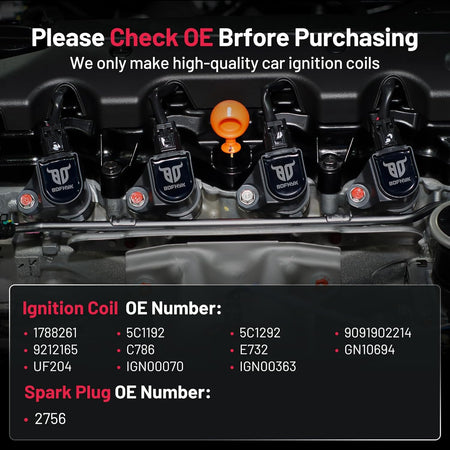 【Features of ignition coil:】High quality ignition coils are made of silicon steel material, Japan-imported rubber, and Germany-imported varnished wire, which makes our coils have a long using life and better quality. ‼Please check OE:1788261 5C1192 5C1292 9091902214 9212165 C786 E732 GN10694 IGN00070 IGN00363 UF204.