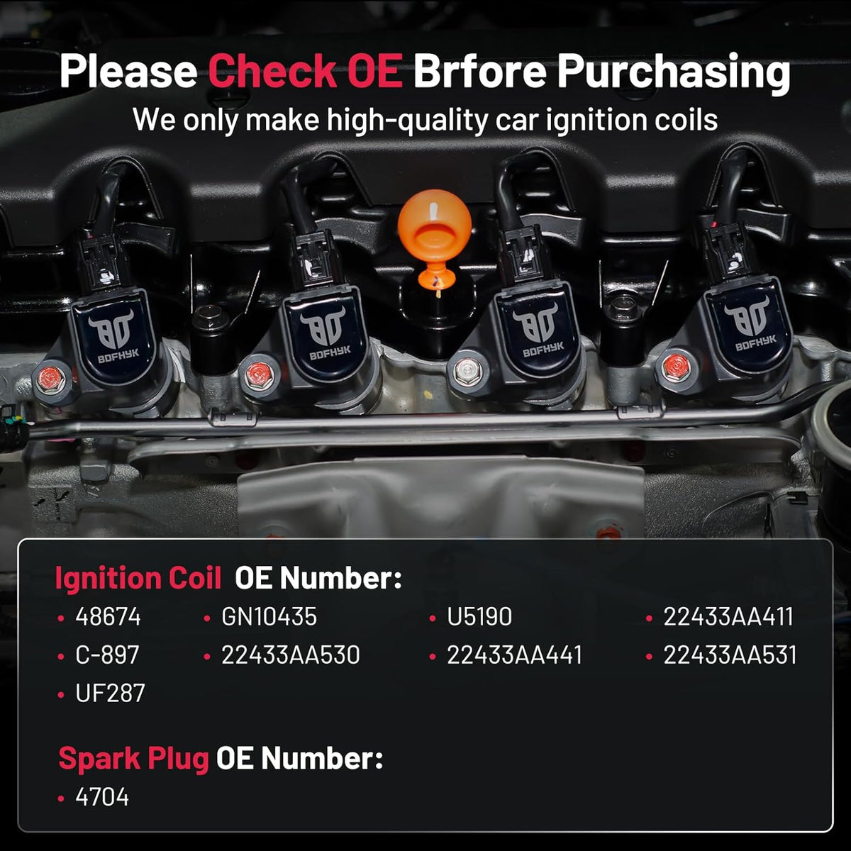 【Features of ignition coil:】High quality ignition coils are made of silicon steel material, Japan-imported rubber, and Germany-imported varnished wire, which makes our coils have a long using life and better quality. ‼Please check OE:48674 C-897 GN10435 U5190 22433AA411 22433AA441 22433AA530 22433AA531 UF287.