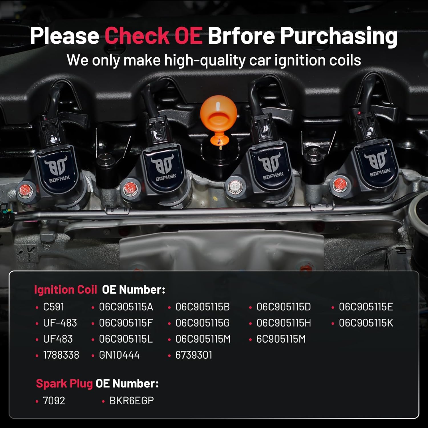 【Features of ignition coil:】High quality ignition coils are made of silicon steel material, Japan-imported rubber, and Germany-imported varnished wire, which makes our coils have a long using life and better quality. ‼Please check OE:06C905115A 06C905115B 06C905115D 06C905115E 06C905115F 06C905115G 06C905115H 06C905115K 06C905115L 06C905115M 6C905115M UF-483 UF483 GN10444 6739301 C591 1788338.