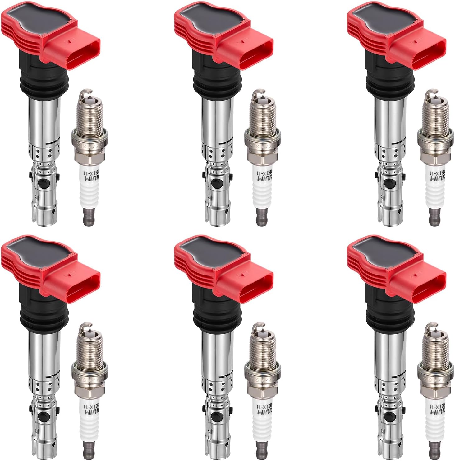 BDFHYK 6 Ignition Coil Pack UF483 and 6 Iridium Spark Plug 7092 Compatible with Audi 2002-2005 A4, 2002-2006 A4 Quattro, 2002-2004 A6, 2002 2004 A6 Quattro 3.0L L6 Coil for GN10444 6739301 1788338
