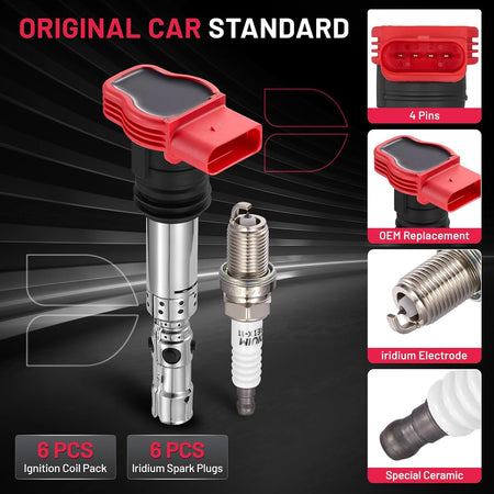 【Basic Info:】Ignition Coil UF483 & Spark Plugs 7092 Compatible with Audi 2002-2005 A4, 2002-2006 A4 Quattro, 2002-2004 A6, 2002 2004 A6 Quattro. Please check detail fitting info from pics or detail page. Please choose suitable coil pack and plugs with confidence.