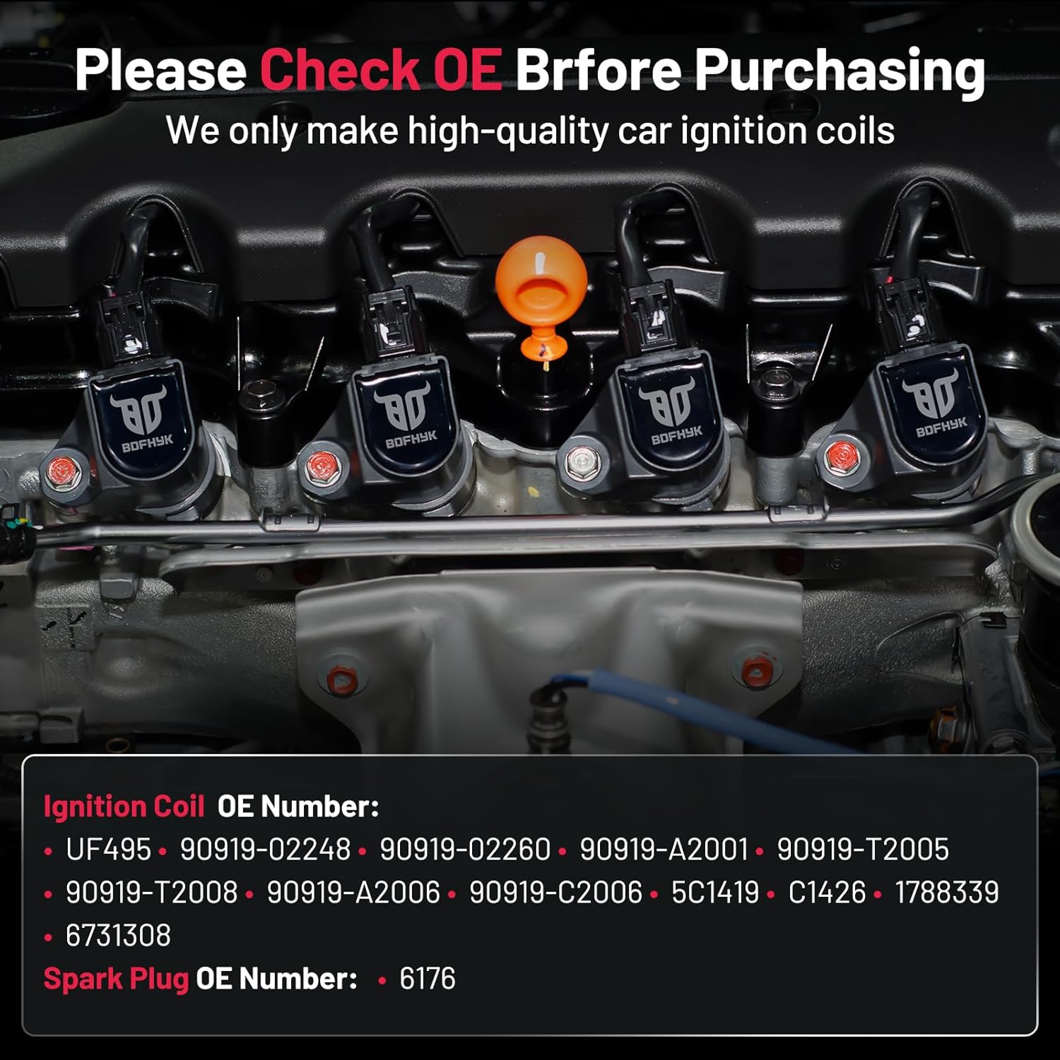 【Features of ignition coil:】High quality ignition coils are made of silicon steel material, Japan-imported rubber, and Germany-imported varnished wire, which makes our coils have a long using life and better quality. ‼Please check OE:UF495 90919-02248 90919-02260 90919-A2001 90919-T2005 90919-T2008 90919-A2006 90919-C2006 5C1419 C1426 1788339 6731308.
