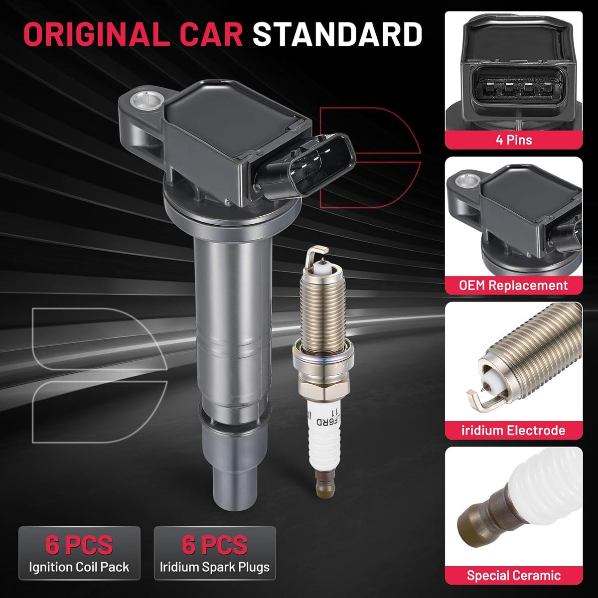 BDFHYK 6 Ignition Coil Pack UF495 and 6 Iridium Spark Plug 6176 Compatible with Toyota Tacoma Tundra 4Runner FJ Cruiser V6 4.0L 2005 2006 2007 2008 2009 2010 2011 2012 2013 2014 Coil for 5C1419 C1426