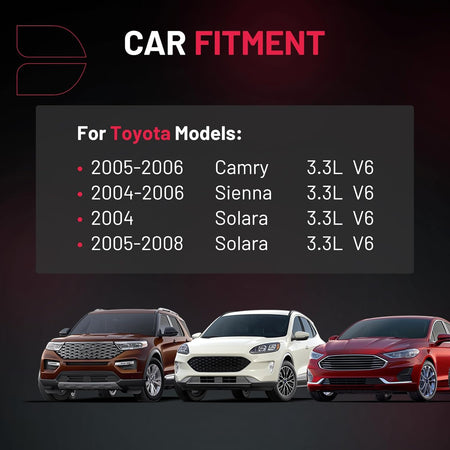 【Basic Info:】Ignition Coil UF506 & Spark Plugs 4504 Compatible with Toyota 2005-2006 Camry 3.3L V6, 2004-2006 Sienna 3.3L V6, 2004-2008 Solara 3.3L V6. Please check detail fitting info from pics or detail page. Please choose suitable coil pack and plugs with confidence.