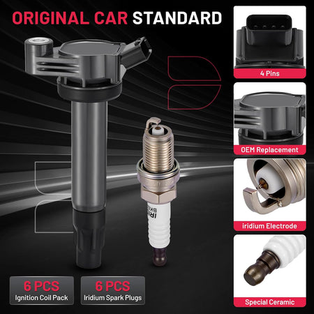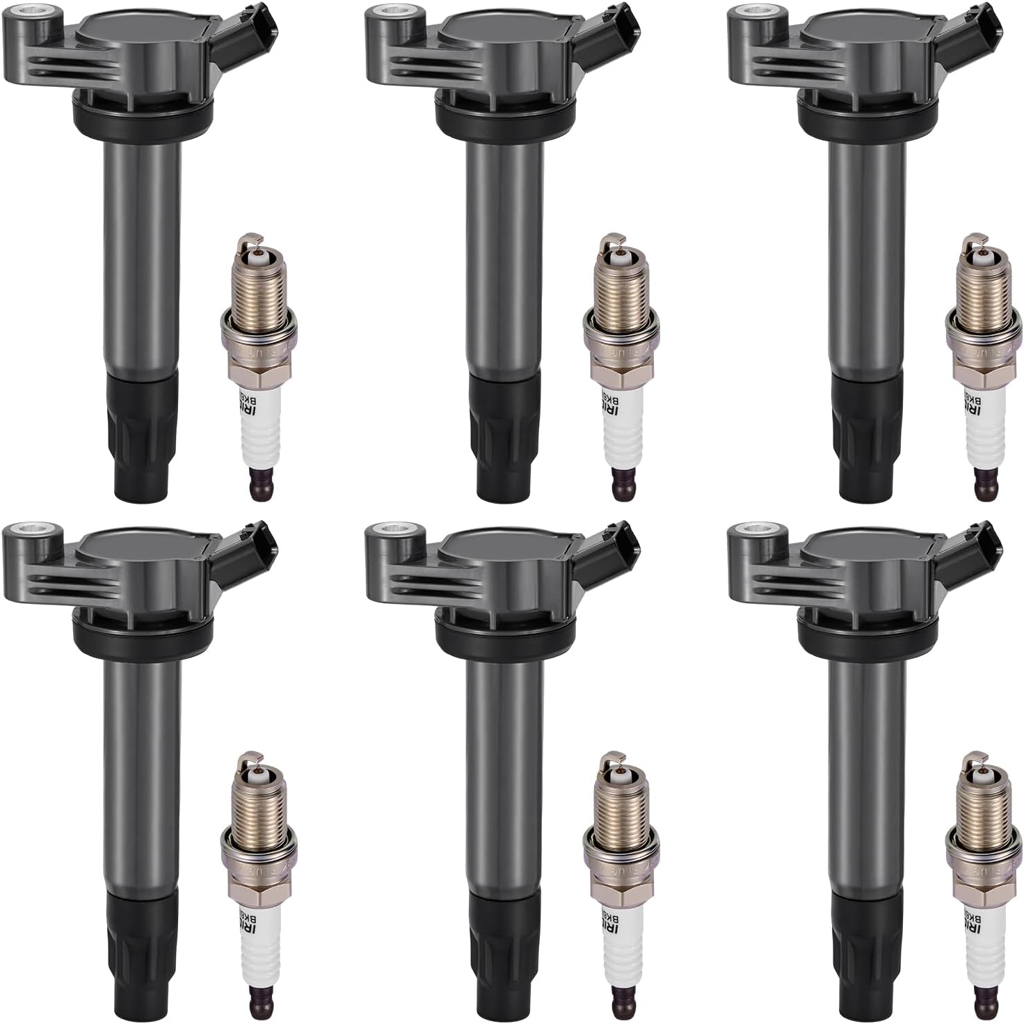 BDFHYK 6 Ignition Coil Pack UF506 and 6 Iridium Spark Plug 4504 Compatible with Toyota 2005-2006 Camry, 2004-2006 Sienna, 2004-2008 Solara 3.3L V6 Coil for 5C1442 C1452