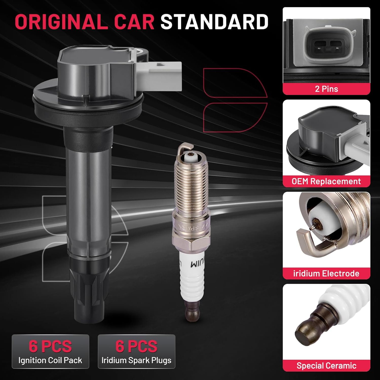 BDFHYK 6 Ignition Coil Pack UF612 and 6 Iridium Spark Plug SP534 Compatible with Ford 2010-2012 Flex,2010-2012 Taurus;Compatible with Lincoln 2010-2012 MKS,2010-2012 MKT 3.5L Coil for GN10843 5C1856