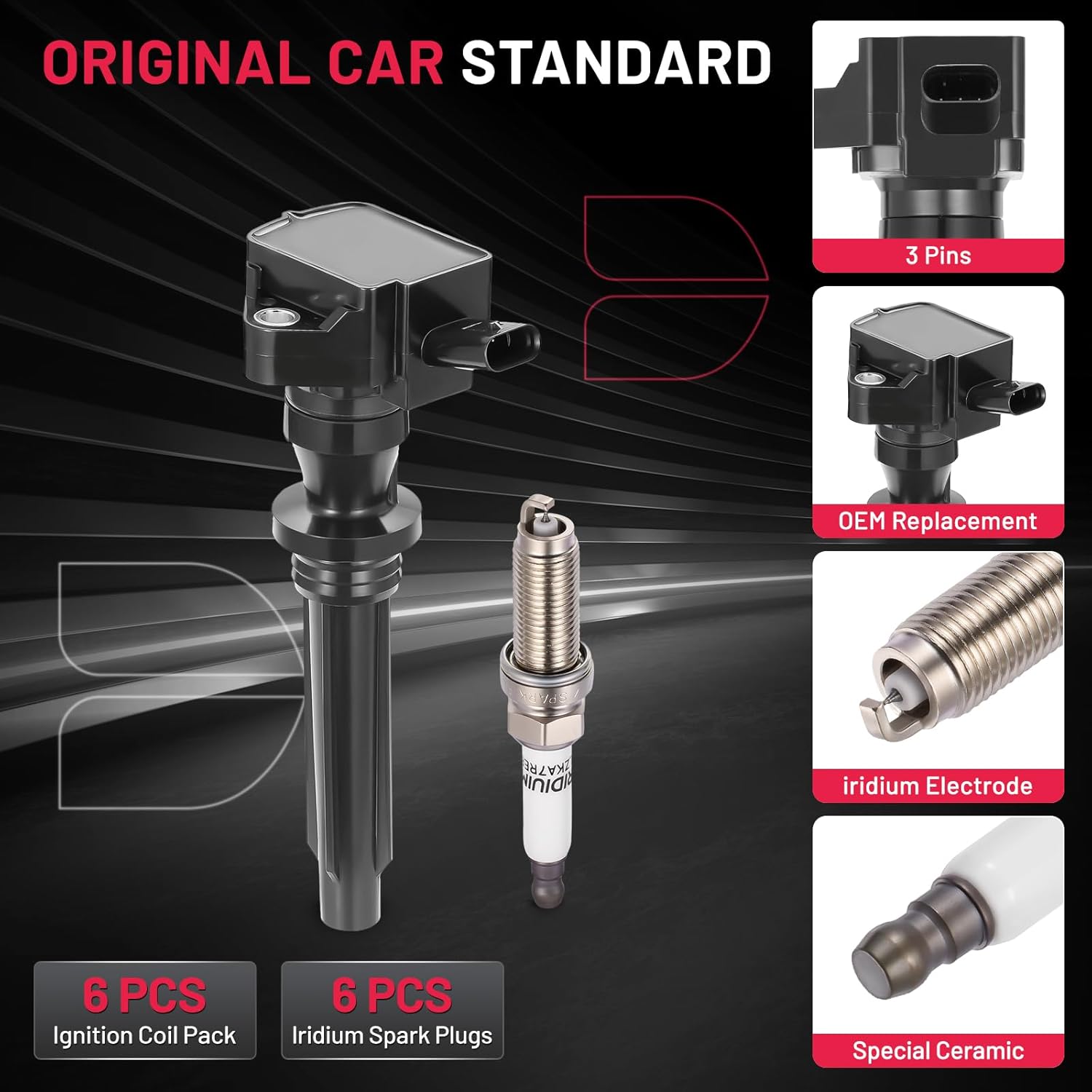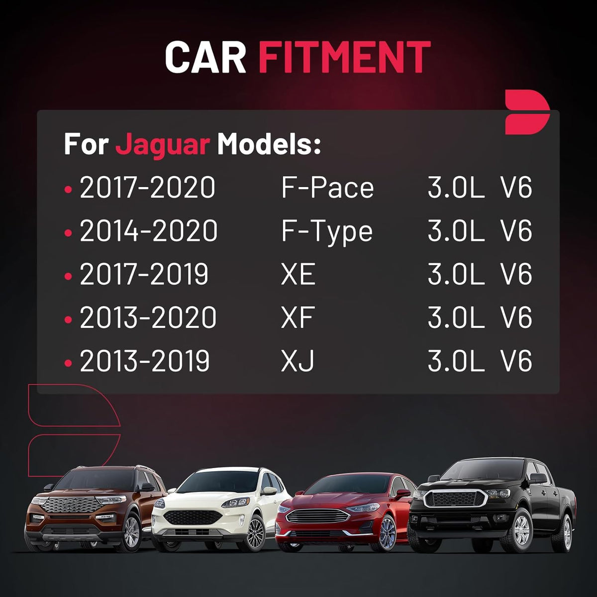 【Basic Info:】Ignition Coil UF727 & Spark Plugs 93476 Compatible with Jaguar 2017-2020 F-Pace, 2014-2020 F-Type, 2017-2019 XE, 2013-2020 XF, 2013-2019 XJ. Please check detail fitting info from pics or detail page. Please choose suitable coil pack and plugs with confidence.