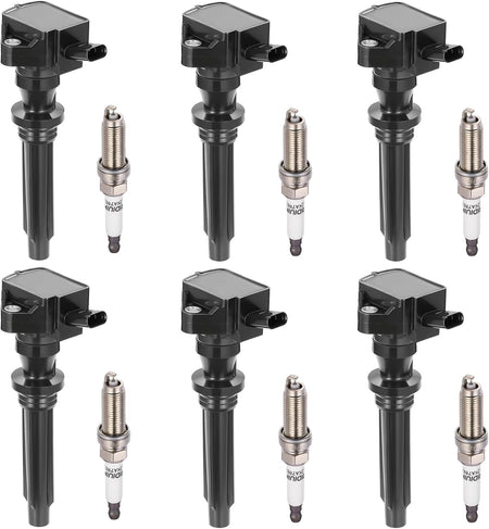 BDFHYK 6 Ignition Coil Pack UF727 and 6 Iridium Spark Plug 93476 Compatible with Jaguar 2017-2020 F-Pace, 2014-2020 F-Type, 2017-2019 XE, 2013-2020 XF, 2013-2019 XJ Coil for UF-727 5C2257 C2Z18619