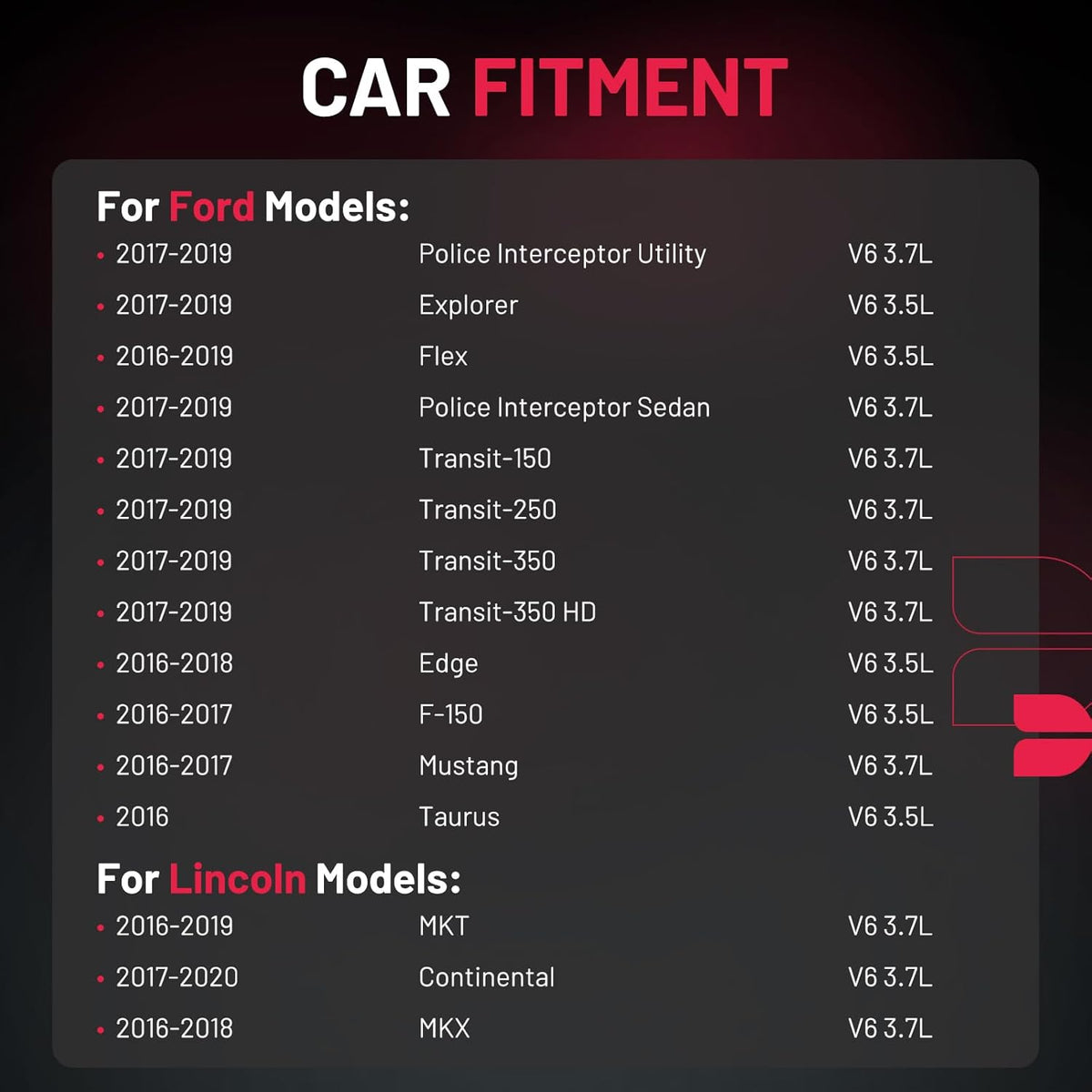 【Basic Info:】Ignition Coil UF823 & Spark Plugs 6509 Compatible with Ford 2017-2019 Explorer Flex Police Interceptor Sedan, 2017-2019 Transit-150 Transit-250 Transit-350 HD V6 3.7L, 2016-2018 Edge F150 Mustang Taurus V6 3.5L; Compatible with Lincoln 2016-2019 MKT MKX Continental V6 3.7L.Please check detail fitting info from pics or detail page.Please choose suitable coil pack and plugs with confidence.