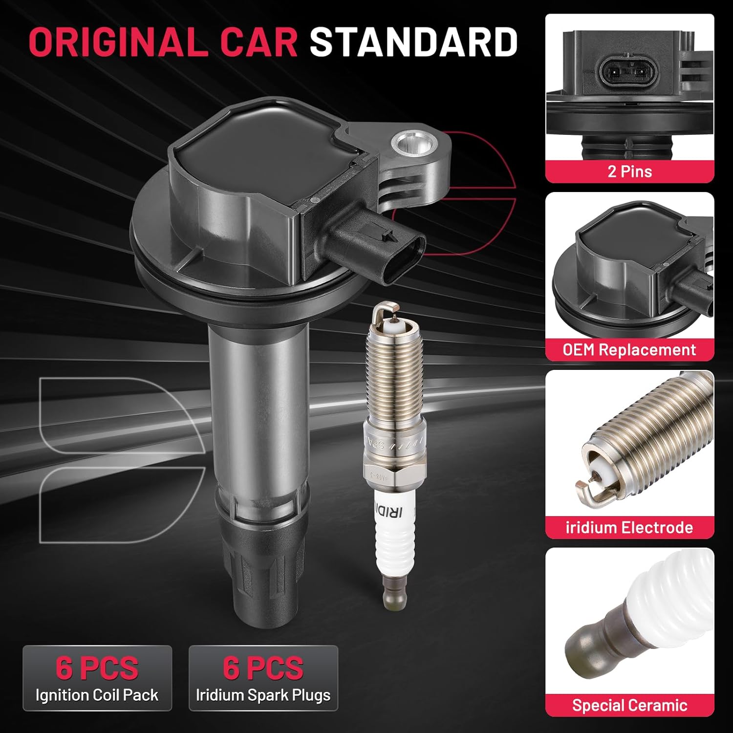 BDFHYK 6 Ignition Coil Pack UF823 and 6 Iridium Spark Plug 6509 Compatible with Edge F150 Mustang Taurus Explorer Transit 150 250 350 HD,Compatible with Lincoln MKT MKX Continental Coil for DG563