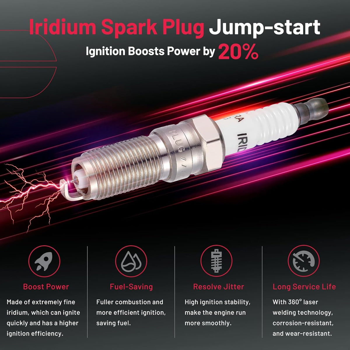 【Features of spark plug:】Professional spark plugs is made of high-tech materials. We choose iridium electrode and unique ceramic to make sure your car can have a new life after being installed. The car will start quickly and speed up in a short time as powerful as a new car. ‼Please check OE:XP5363.