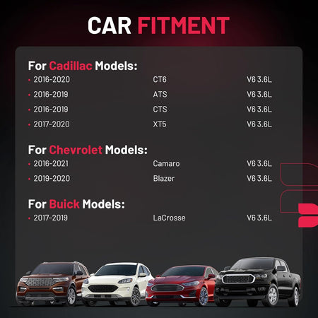 【Basic Info:】Ignition Coil UF830 & Spark Plugs LNAR7AIX Compatible with Cadillac 2017-2020 XT5 CT6 ATS CTS V6 3.6L; Compatible with Chevy 2016-2021 Camaro V6 3.6L, 2019-2020 Blazer V6 3.6L; Compatible with Buick 2017-2019 LaCrosse V6 3.6L. Please check detail fitting info from pics or detail page. Please choose suitable coil pack and plugs with confidence.