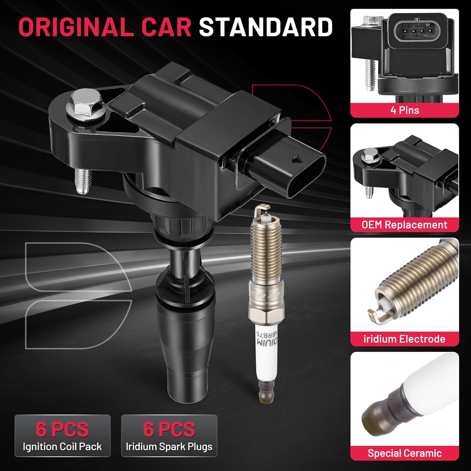 BDFHYK 6 Ignition Coil Pack UF830 and 6 Iridium Spark Plug LNAR7AIX Compatible with Chevy 16-20 Camaro, 19-20 Blazer, Compatible with Cadillac 17-20 XT5 CT6 ATS CTS, 17-20 LaCrosse Coil for GN10889