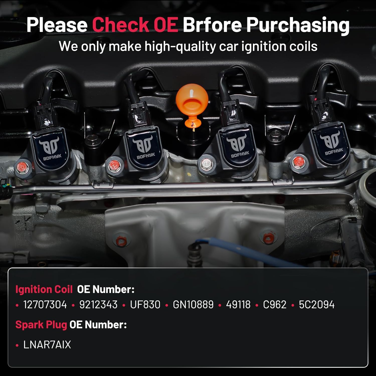 【Yes, you need a new coil and spark plug!】If your car has been used for a long time(over 80000km) and has problems like car shaking, start-up failure, speeding up slowly, and increasing fuel consumption, you may need to change a new set of spark plugs and coil packs. BDFHYK ignition coil packs and spark plugs can offer you a professional user experience and make your car like new. You may choose it with confidence.