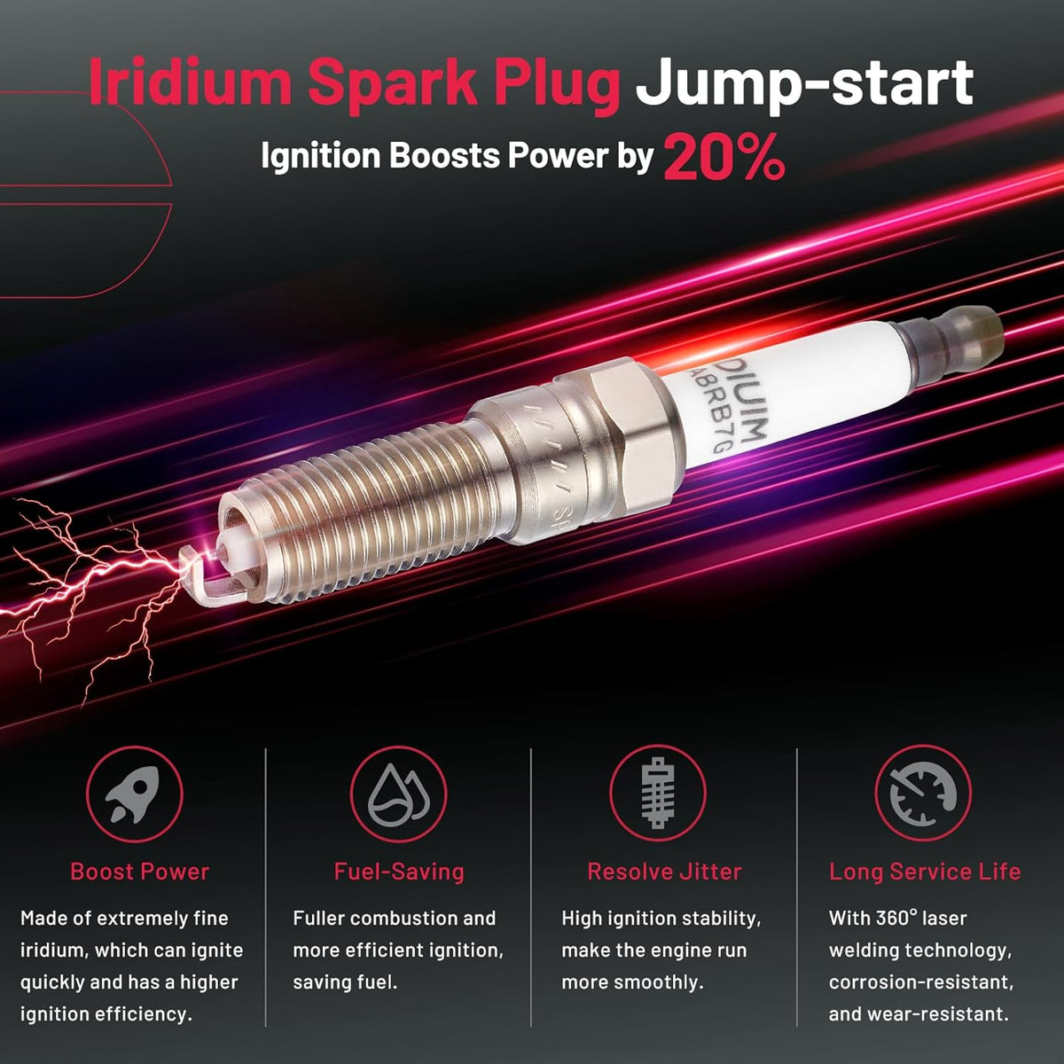 【Features of spark plug:】Professional spark plugs is made of high-tech materials. We choose iridium electrode and unique ceramic to make sure your car can have a new life after being installed. The car will start quickly and speed up in a short time as powerful as a new car. ‼Please check OE:LNAR7AIX.