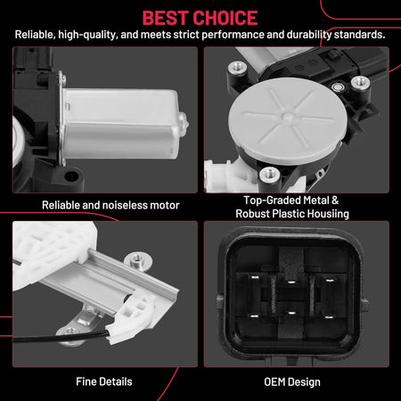 【Premium Quality】 This window regulator and motor assembly feature significant enhancements over the factory part, providing a higher level of reliability. It incorporates tension springs to effectively resist cable reel binding caused by prolonged use. Additionally, it is equipped with advanced cable guides to eliminate high cable tension and reduce cable stress.
