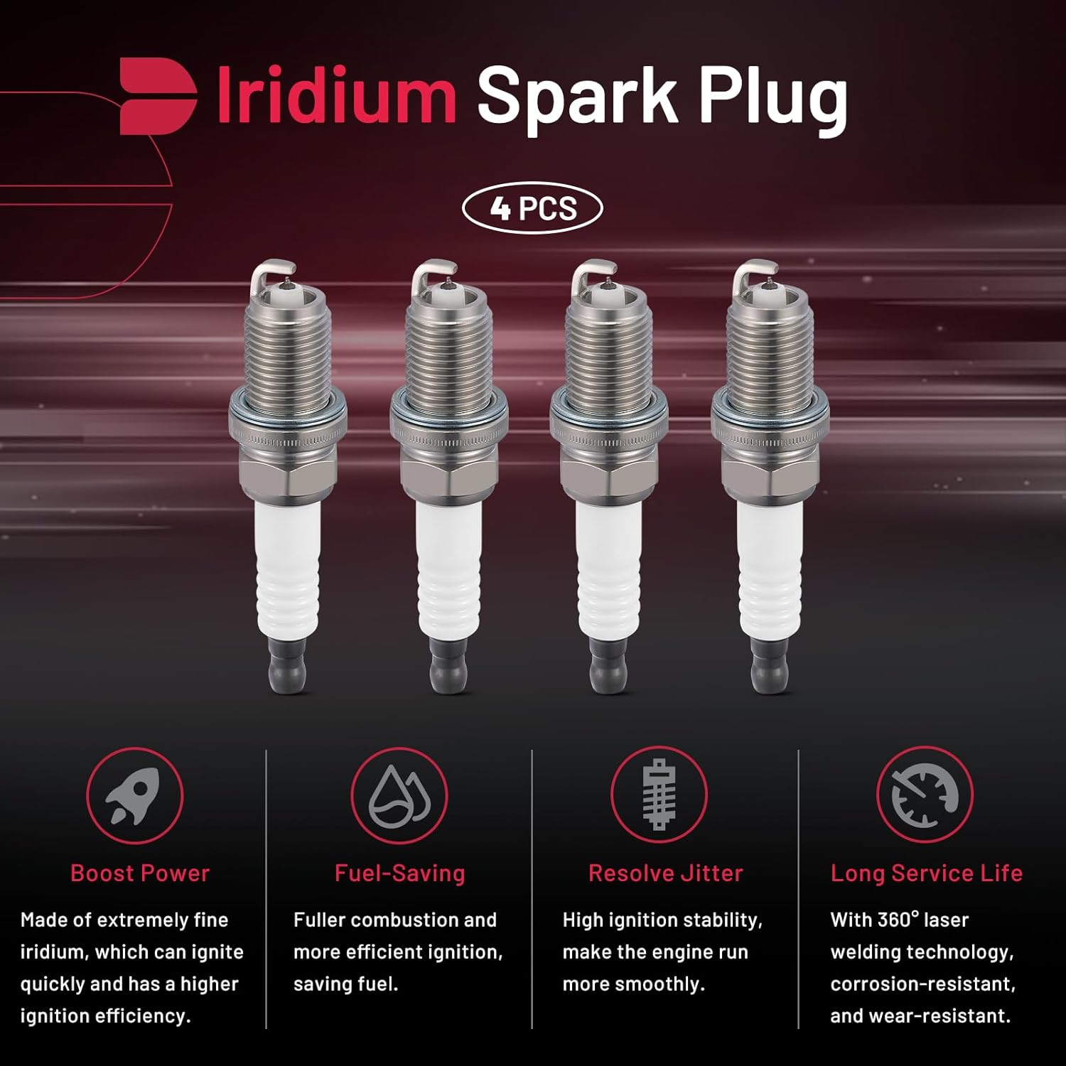 BDFHYK 6341 Iridium Spark Plugs Compatible with Toyota compatible with Bentley for Dodge for Mercedes-Benz for Saturn 2.0L 2.4L 3.0L L4 L6 V6 Replacement for BKR5EIX Set of 4