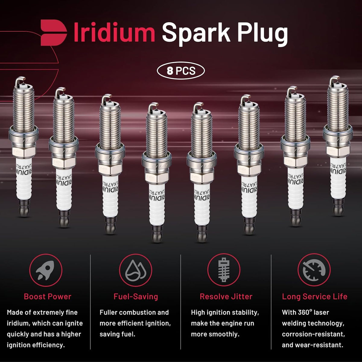 BDFHYK 6441 Iridium Spark Plugs Compatible with ILX 128i 323i 528i Civic ES350 GX460 LX570 RX350 RX450h Legacy Outback 4Runner Avalon Camry Highlander RAV4 Sequoia Replacement for LFR6AIX-11 Set of 8