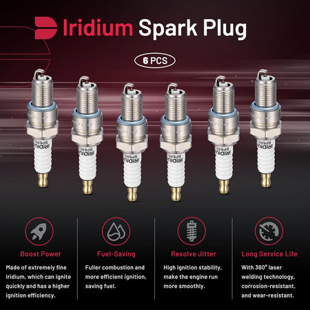 BDFHYK 6578 Iridium Spark Plugs Compatible with Cherokee 300 Special Calais Suburban Dart 2.0L 3.2L 5.0L L4 L6 V8 Replacement for BPR4ES Set of 6