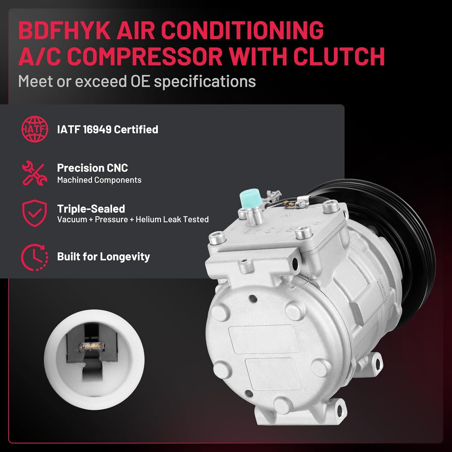 Reliability & Performance - 100% Brand New | IATF 16949 Certified | 50,000-Mile Accelerated Life Tested | Triple-Sealed: Vacuum + Pressure + Helium Leak Tested (99.9% Leak-Free) | Precision CNC-Machined Components | Faster Cooling & Quieter vs. Standard Compressors | Built for Longevity