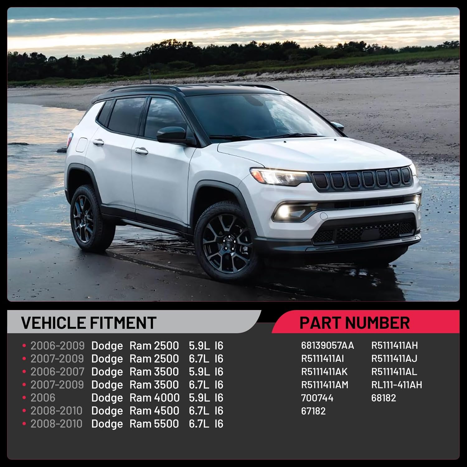 Vehicle Fitment - The AC compressor compatible with Dodge Ram 2500 2006-2009 5.9L, compatible with Dodge Ram 2500 2007-2009 6.7L, compatible with Dodge Ram 3500 2006-2007 5.9L, compatible with Dodge Ram 3500 2007-2009 6.7L, compatible with Dodge Ram 4000 2006 5.9L, compatible with Dodge Ram 4500 2008-2010 6.7L, compatible with Dodge Ram 5500 2008-2010 6.7L.