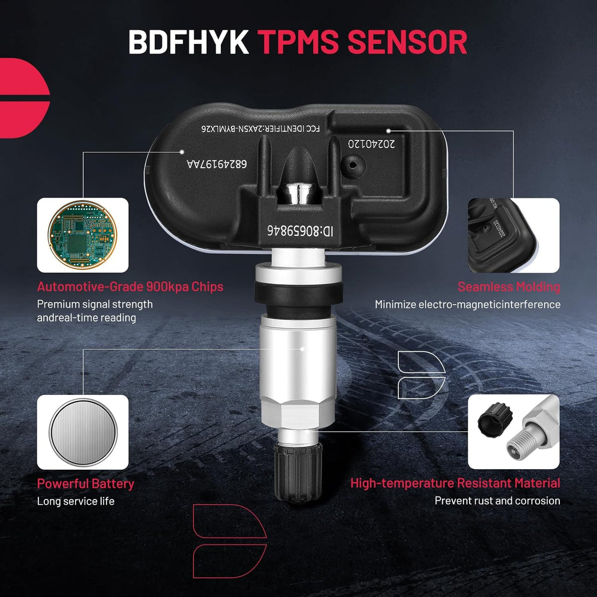 Customer Service: 1-year Assurance. All BDFHYK Tire Pressure Monitoring System (TPMS) sensors undergo rigorous testing during manufacturing to ensure top quality. If you have any questions, please do not hesitate to contact us. Your satisfaction is our top priority
