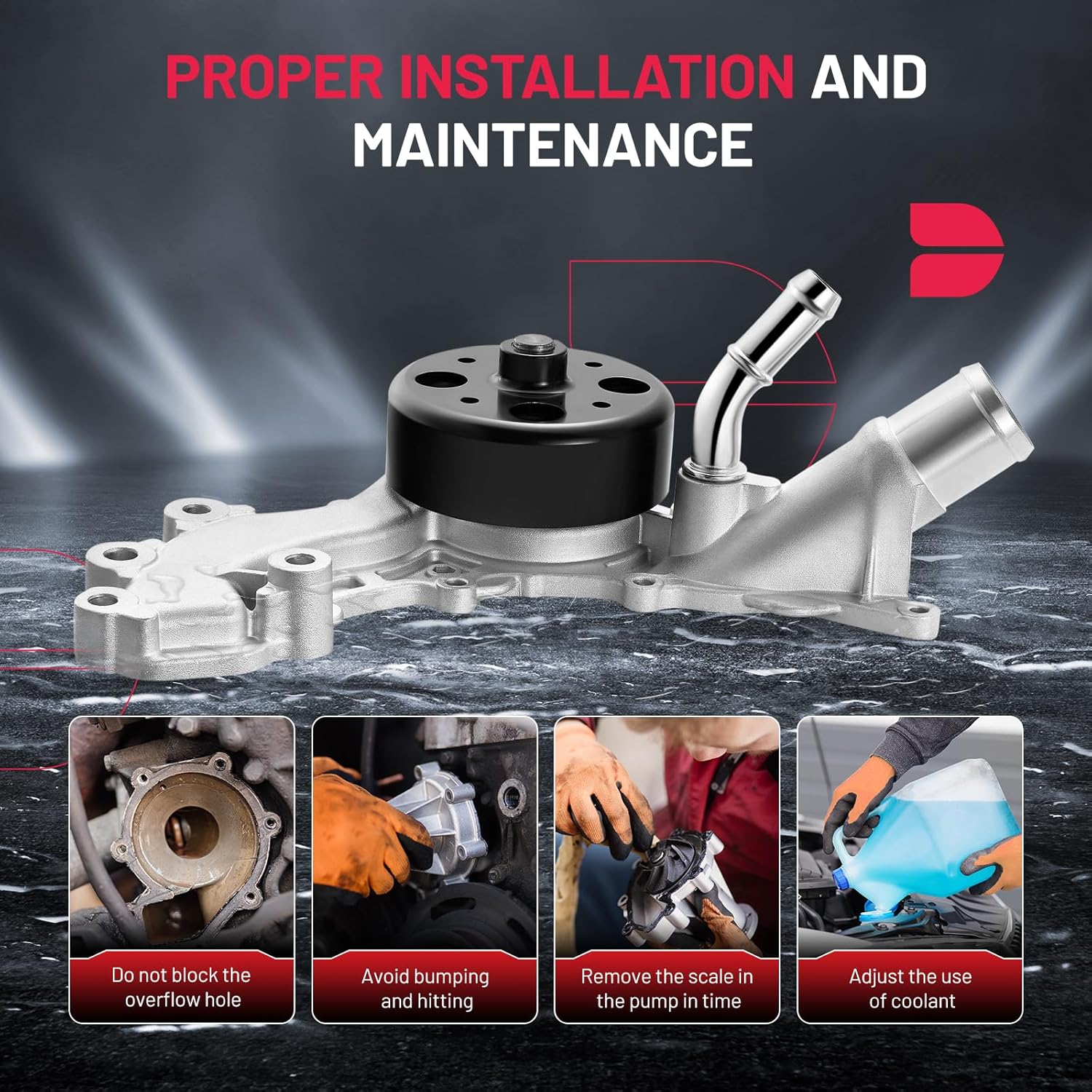 [PREMIUM QUALITY] This engine water pump is manufactured in ISO/TS16949 2009 certified facilities, built to meet or exceed OE specifications, Undergone a rigorous testing before shipping to ensure 100% reliability and leak-free performance.