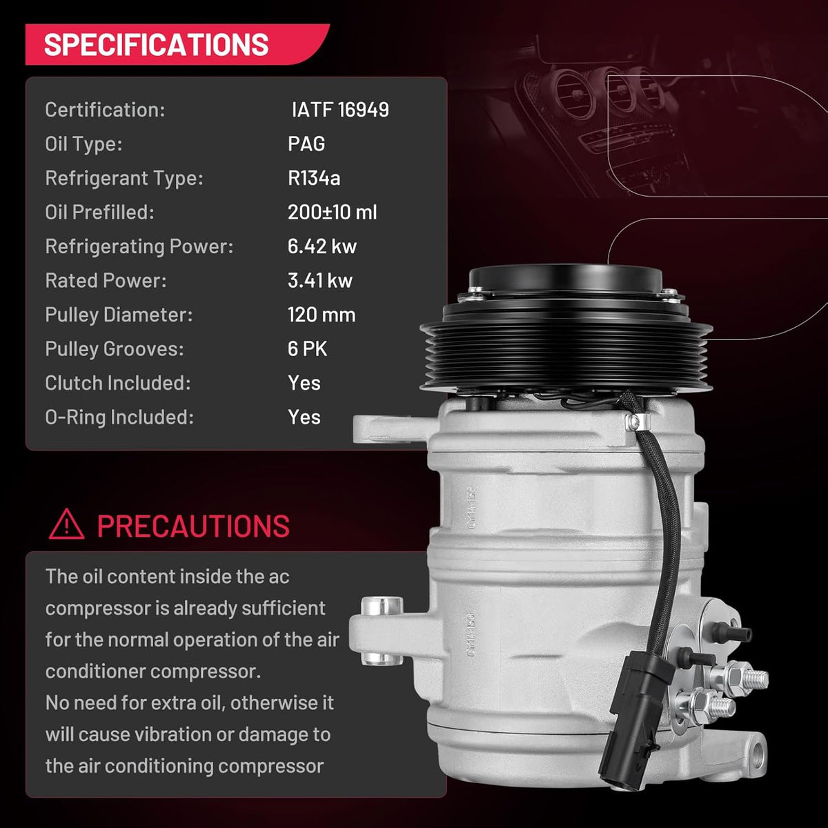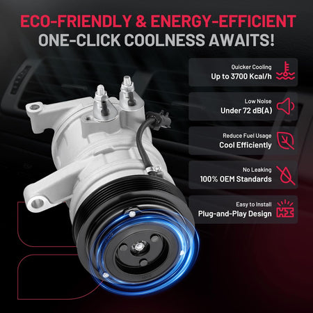 Reliability & Performance - 100% Brand New | IATF 16949 Certified | 50,000-Mile Accelerated Life Tested | Triple-Sealed: Vacuum + Pressure + Helium Leak Tested (99.9% Leak-Free) | Precision CNC-Machined Components | Faster Cooling & Quieter vs. Standard Compressors | Built for Longevity
