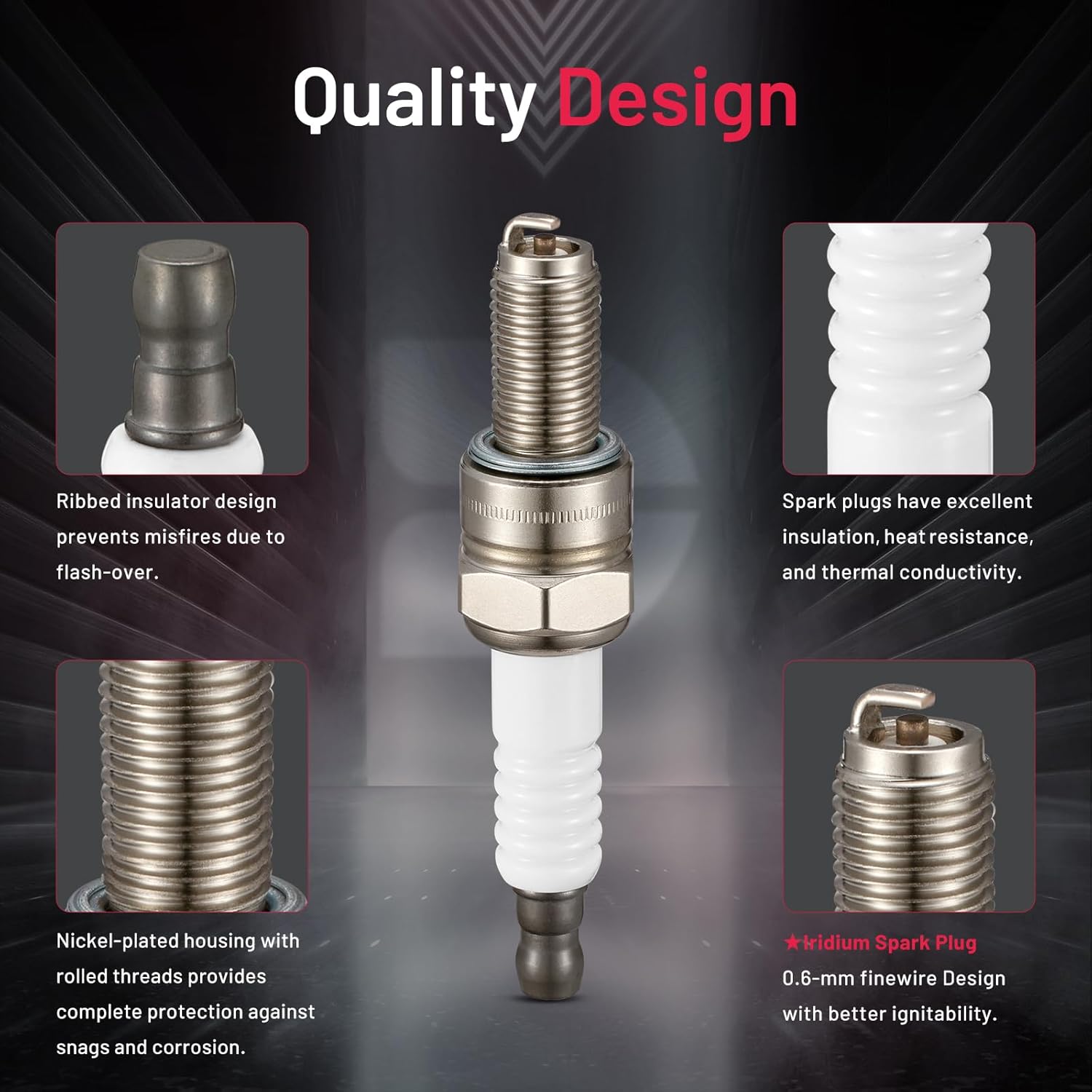 【Relive Performance】:OE standard performance and durability TS16949 certified manufacturer. All center electrodes are made from extremely fine iridium electrodes for good ignition performance. Insulators are made from isostatic ceramics for high density, strength, and good insulation