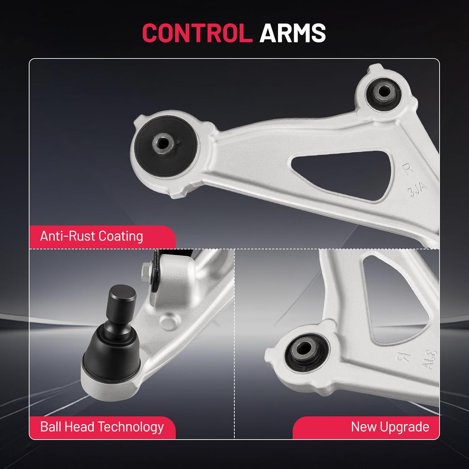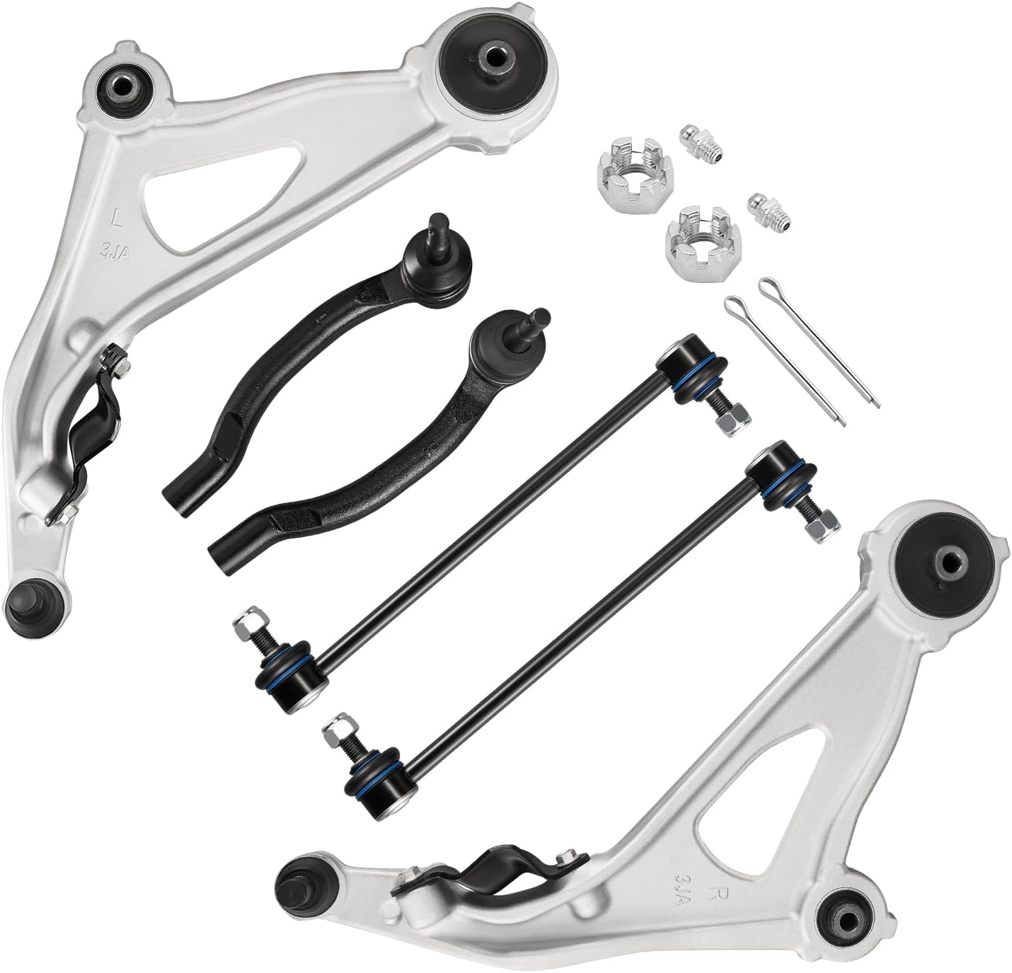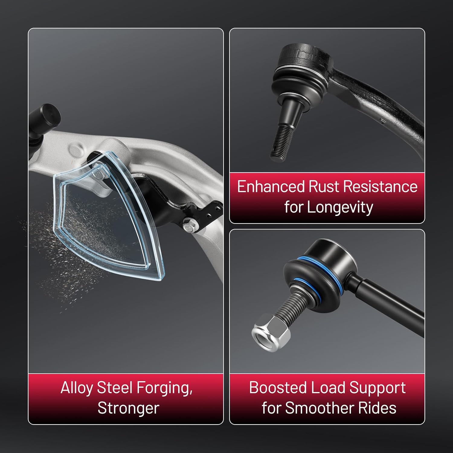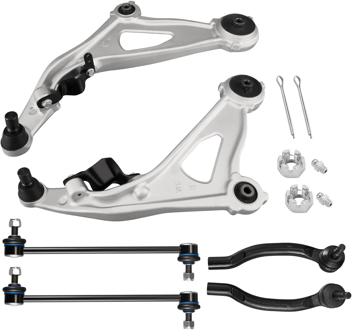 【Products contain】1x Front Lower Control Arm w/Ball Joint - Driver Side - K623064; 1x Front Lower Control Arm w/Ball Joint - Passenger Side - K623063; 1x Front Stabilizer / Sway Bar End Link - Driver Side - K750095; 1x Front Stabilizer / Sway Bar End Link - Passenger Side - K750094; 1x Front Outer Tie Rod End - Driver Side - ES801265; 1x Front Outer Tie Rod End - Passenger Side - ES801266