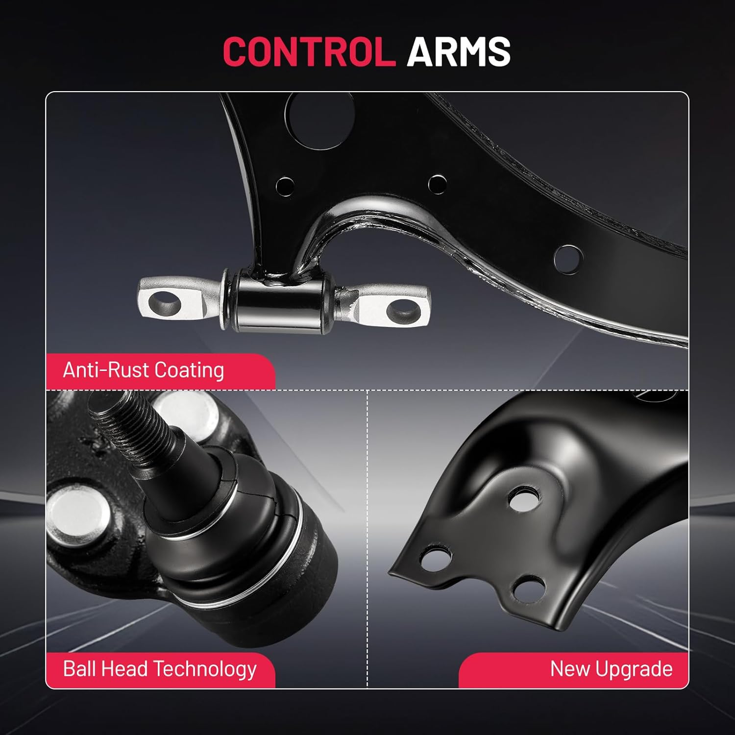 【Products contain】1x Front Lower Control Arm (Passenger) - K620333; 1x Front Lower Left Side Control Arm (Driver) - K620334; 1x Front Lower Left (Driver) Side Suspension Ball Joint - K90346; 1x Front Lower Right (Passenger) Side Suspension Ball Joint - K90347; 2x Front Left & Right Side Sway Bar End Link - K90344