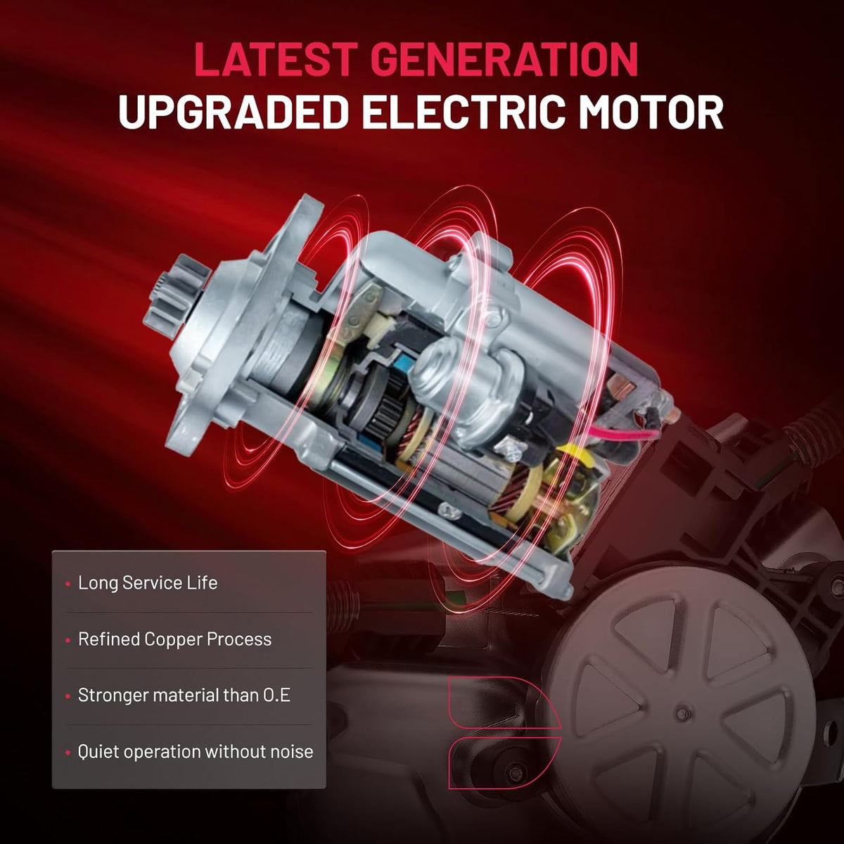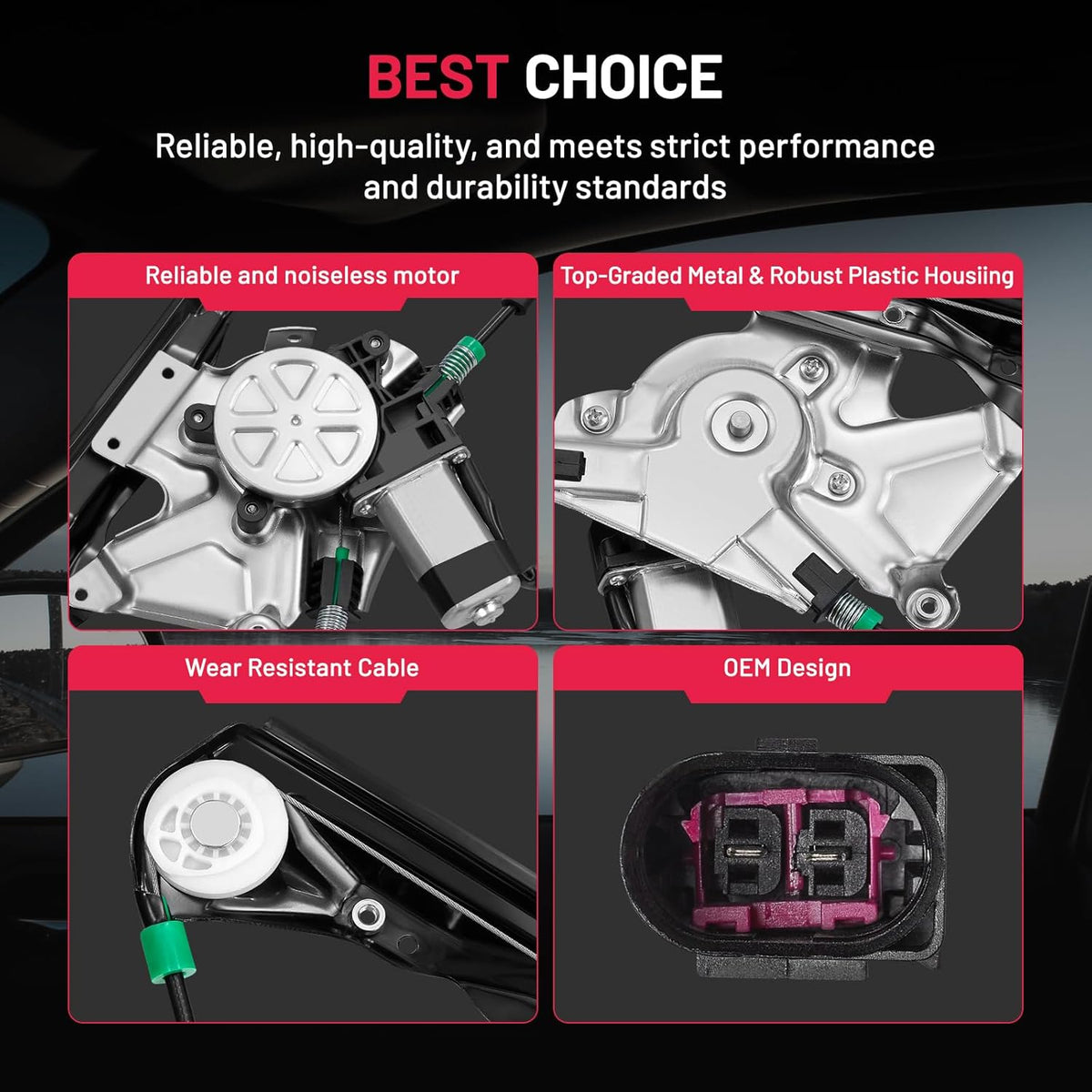 【Premium Quality】 This window regulator and motor assembly feature significant enhancements over the factory part, providing a higher level of reliability. It incorporates tension springs to effectively resist cable reel binding caused by prolonged use. Additionally, it is equipped with advanced cable guides to eliminate high cable tension and reduce cable stress.