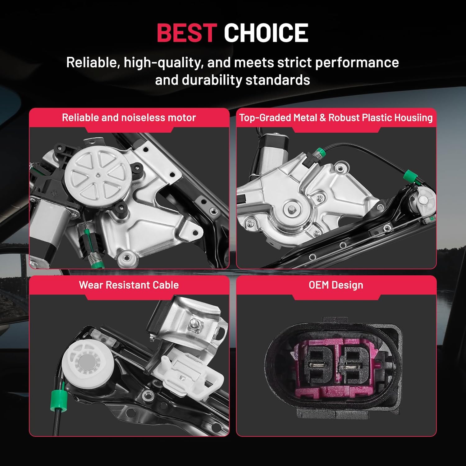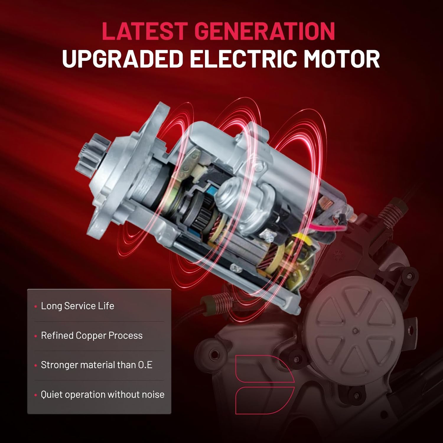【Premium Quality】 This window regulator and motor assembly feature significant enhancements over the factory part, providing a higher level of reliability. It incorporates tension springs to effectively resist cable reel binding caused by prolonged use. Additionally, it is equipped with advanced cable guides to eliminate high cable tension and reduce cable stress.