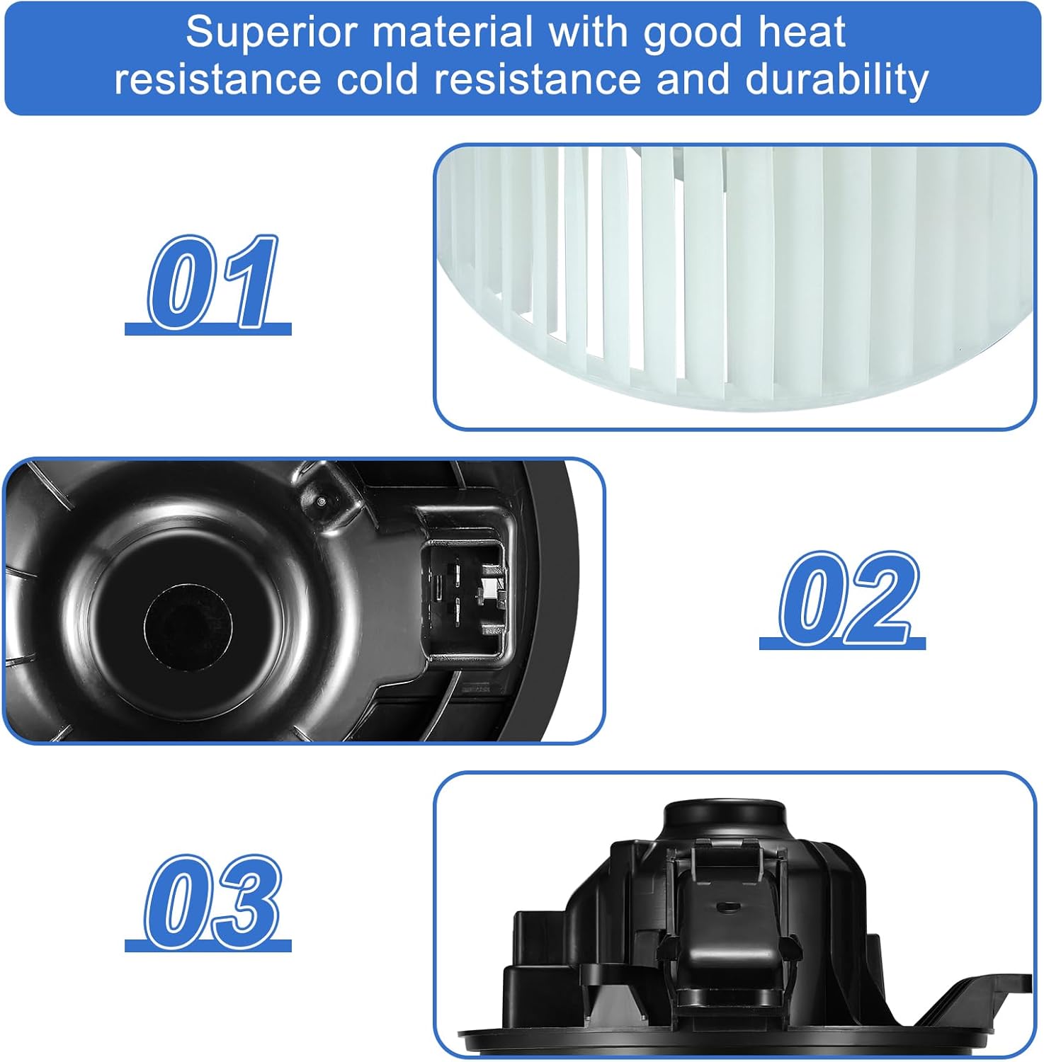 【Durable and Quiet】: Built with high-quality materials, this blower motor is designed to withstand the rigors of daily use, offering long-lasting durability and reliable performance.Despite its powerful performance, this blower motor operates quietly, ensuring a comfortable and noise-free driving experience.