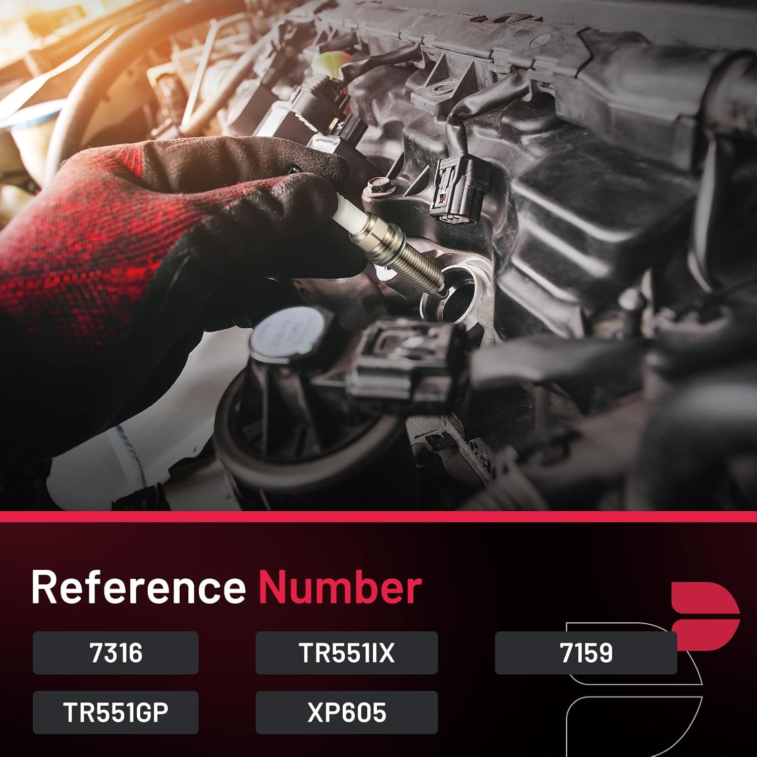【OE Part Numbers】:Spark Plug compatible to 7316 TR551IX 7159 TR551GP XP605.Please confirm the compatibility according to the year/make/model of your vehicle and the OE number of the replaceable part