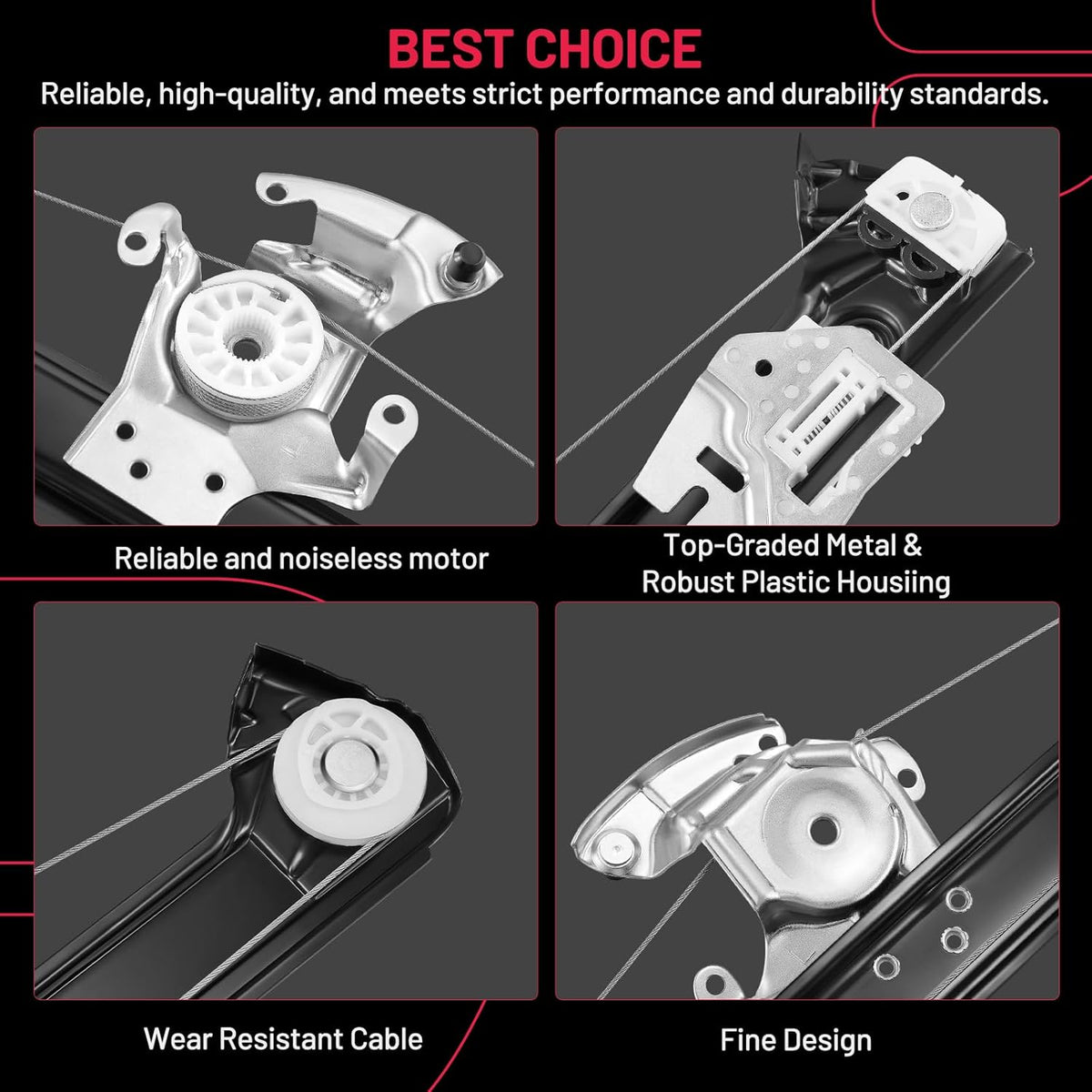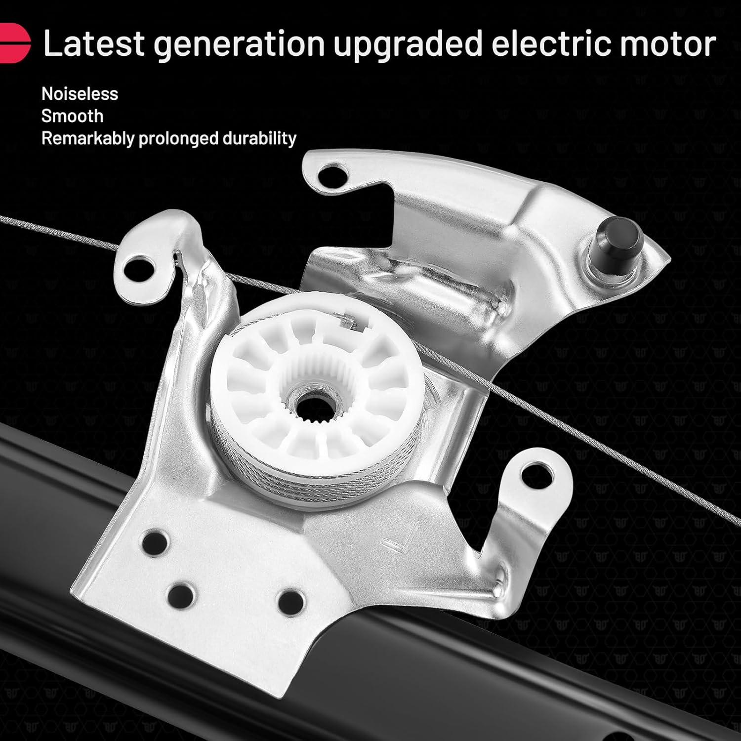 【Premium Quality】 This window regulator and motor assembly feature significant enhancements over the factory part, providing a higher level of reliability. It incorporates tension springs to effectively resist cable reel binding caused by prolonged use. Additionally, it is equipped with advanced cable guides to eliminate high cable tension and reduce cable stress.